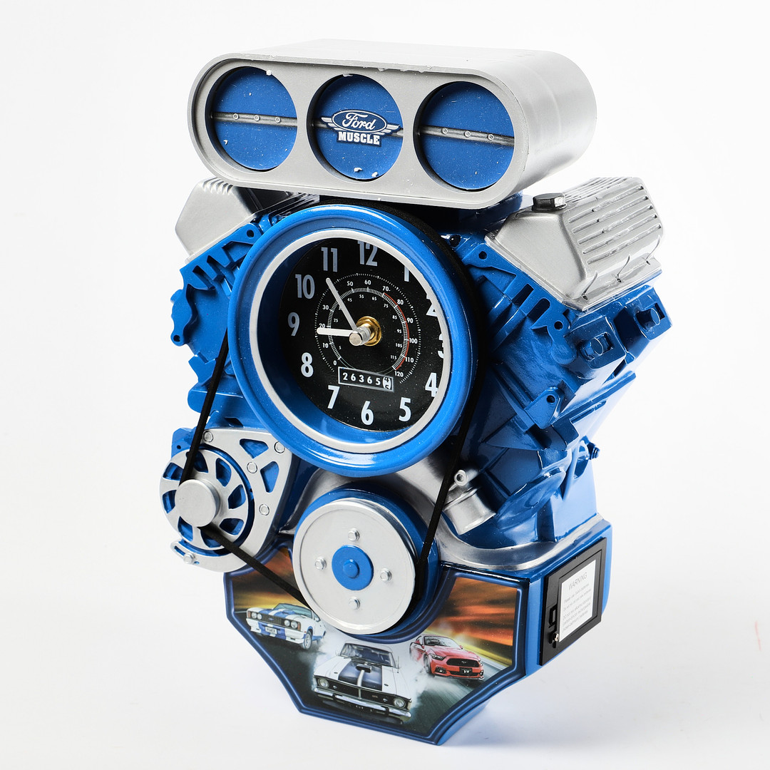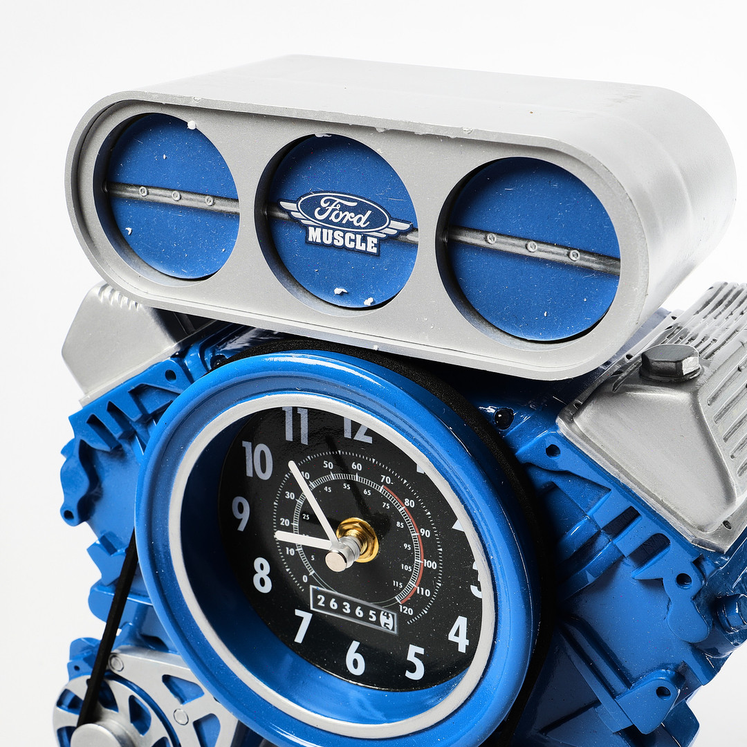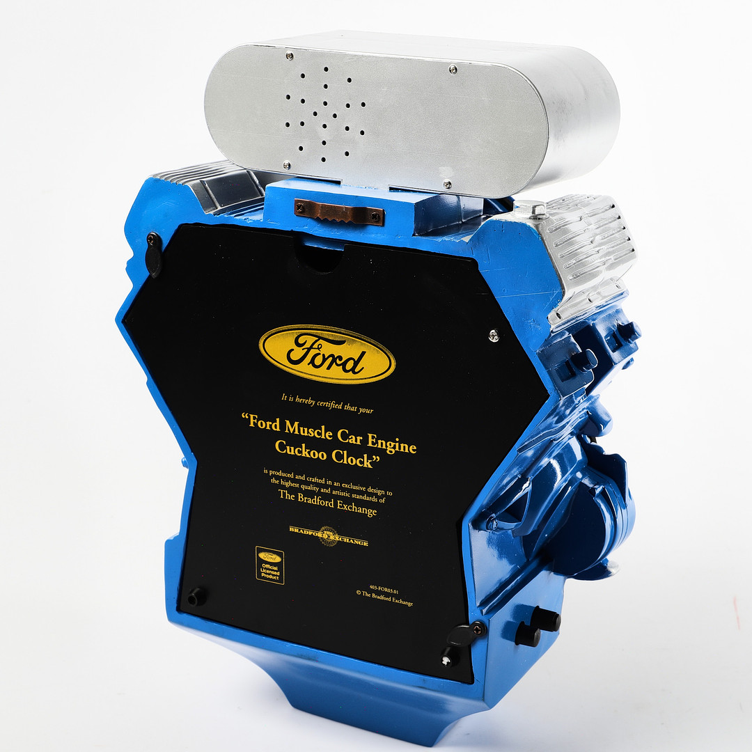 1449164. WALL CLOCK, "Ford Muscle Car Engine Cuckoo Clock".