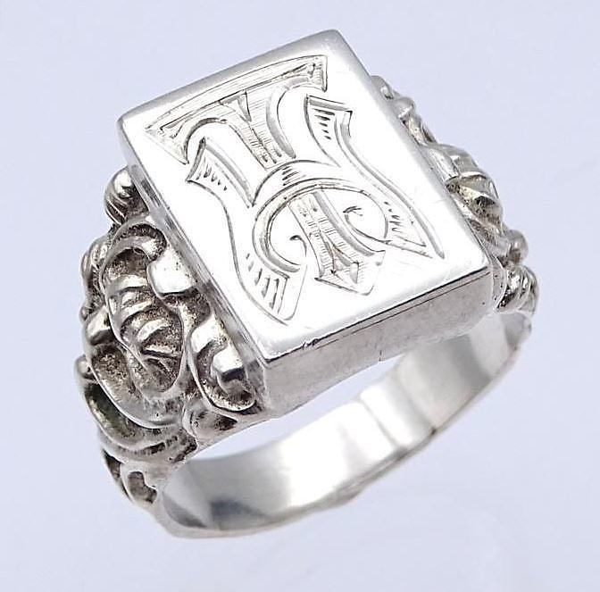 1450059. ANTIQUE MONOGRAM RING, silver.