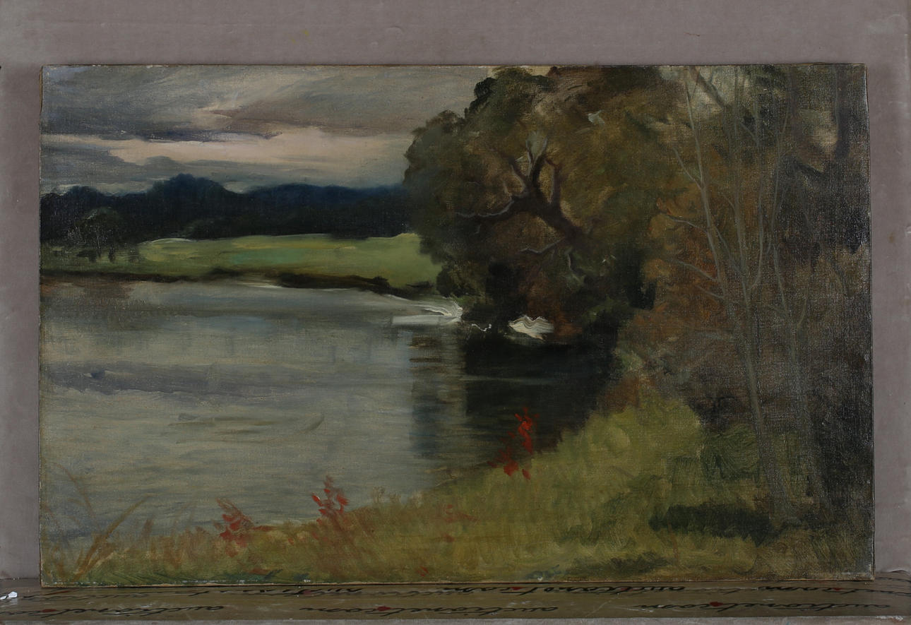ATTRIBUTED TO ANDERS TRULSON. Landscape with water, oil on canvas, unsigned.