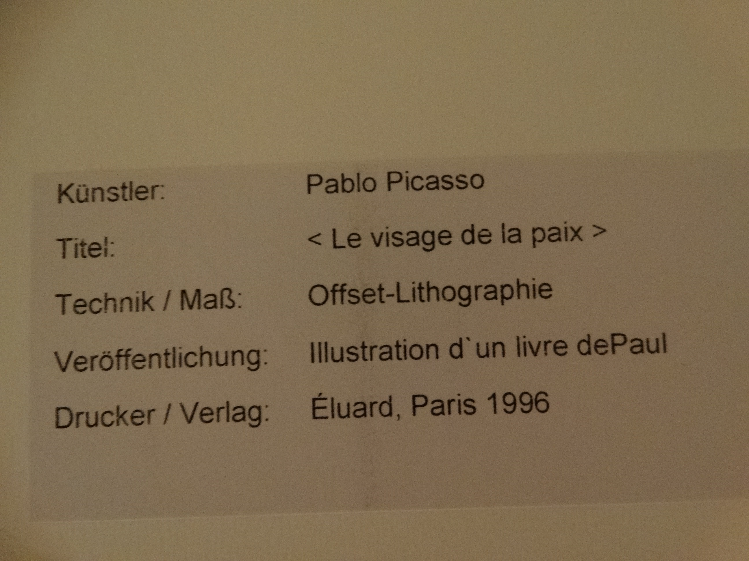 1452842. PABLO PICASSO. Le visage de la paix, Offset, 1996.