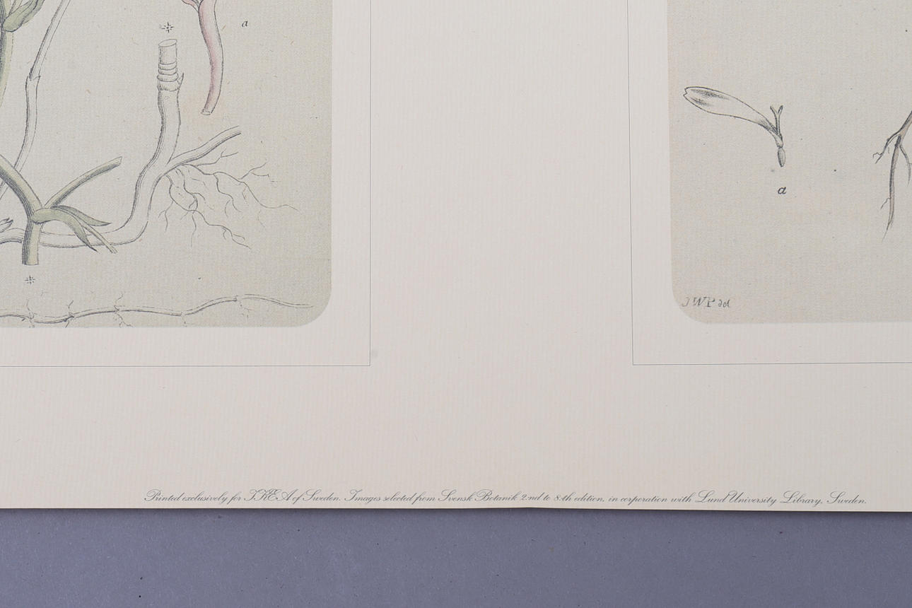 Pictures selected from "Svensk Botanik" from the second to the eighth edition. Same motive. About 70x99 cm.