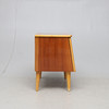 Veneered with mahogany. Intarsia decor. Fold-down front with storage behind. Length 64. Width 42. Height 59 cm.