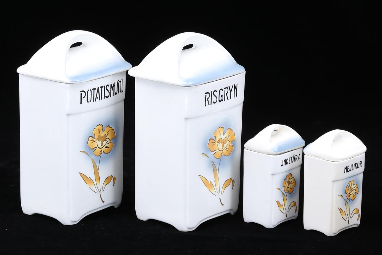 SPICE JARS, 9 pieces, porcelain, Czechoslovakia.
