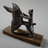 On a wooden plinth which, according to the text below, comes from an 18th-century door in the old town, Stockholm.