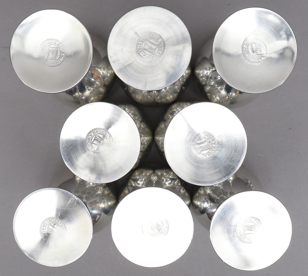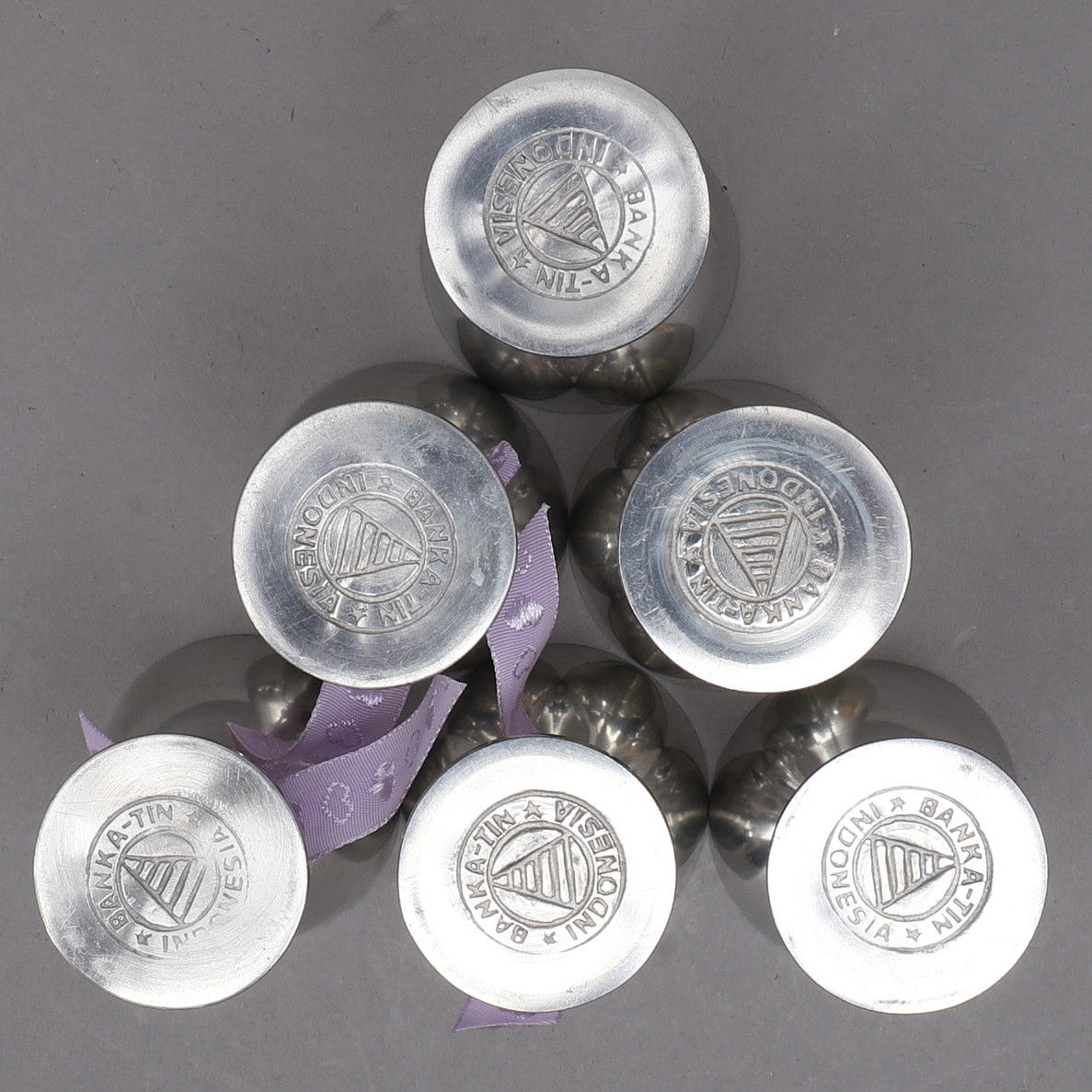 Beaker, 8 parts, height approx. 17 cm, diameter approx. 7.5 cm. Small cups, height approx. 6.5 cm, diameter approx. 4.5 cm.