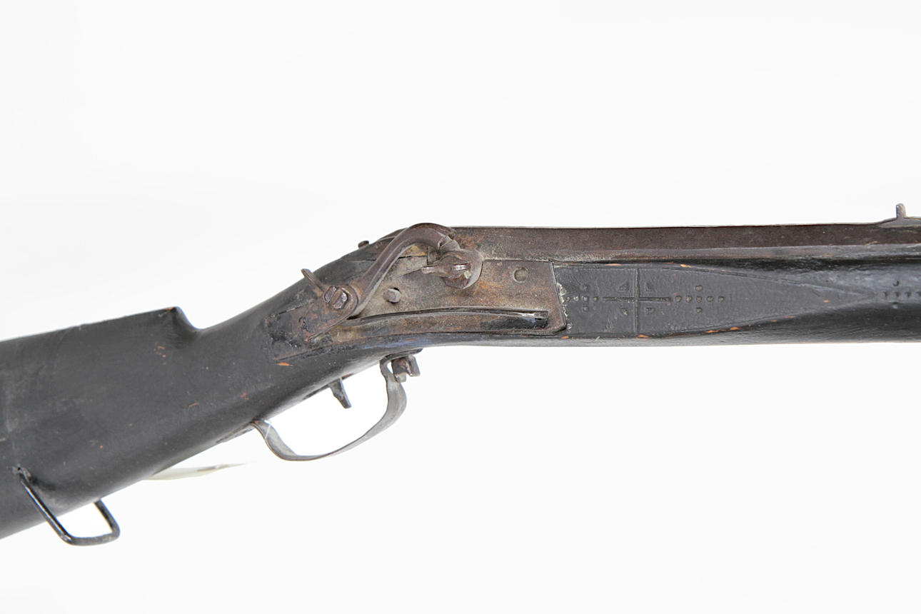 Octagonal fluted barrel approx. 94 cm, wooden butt with strap clips.
