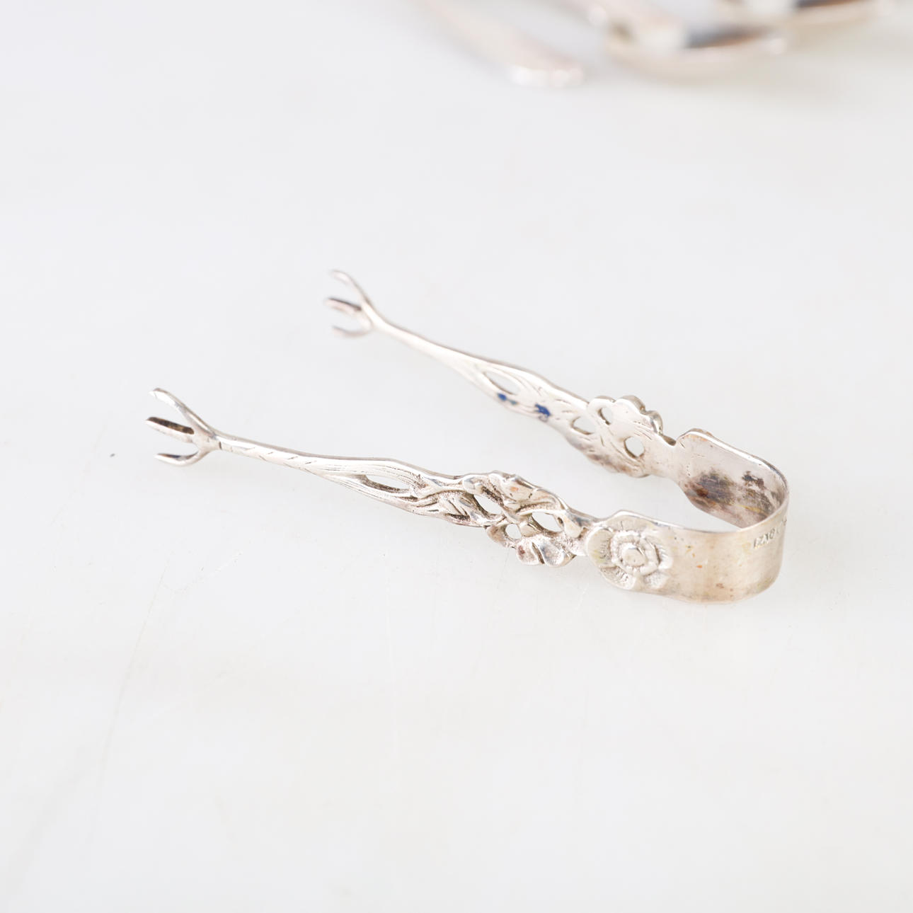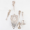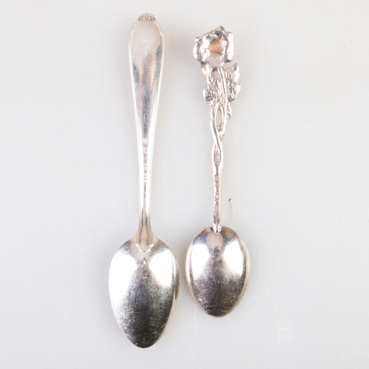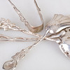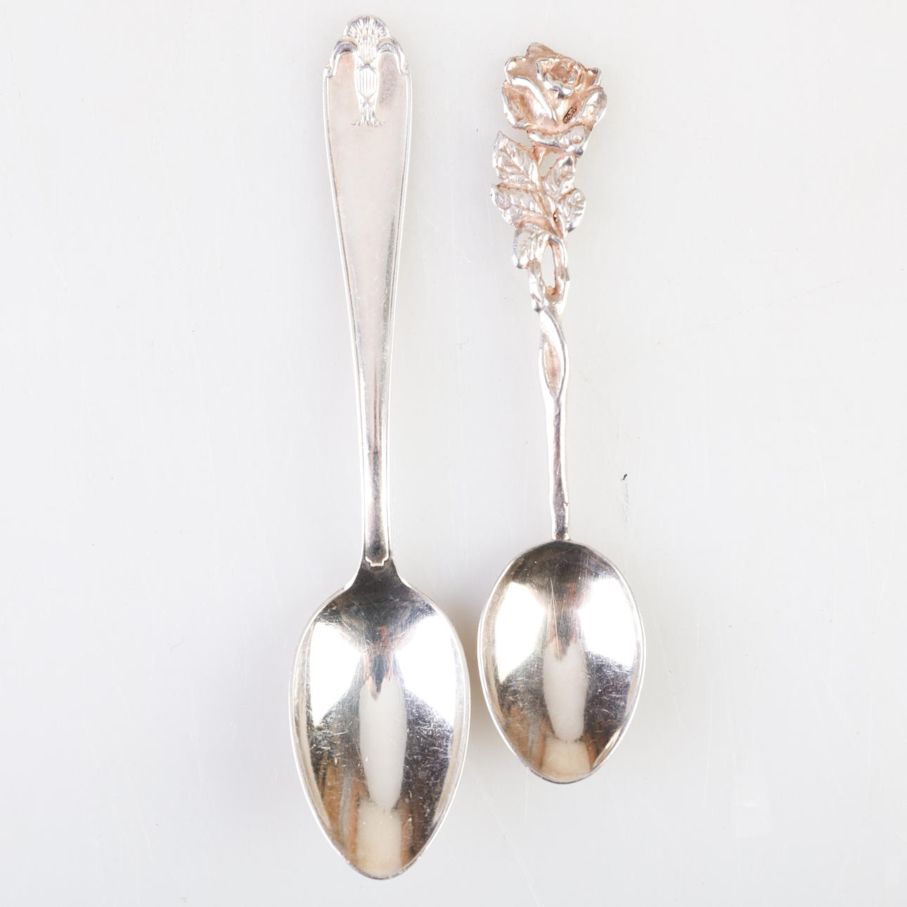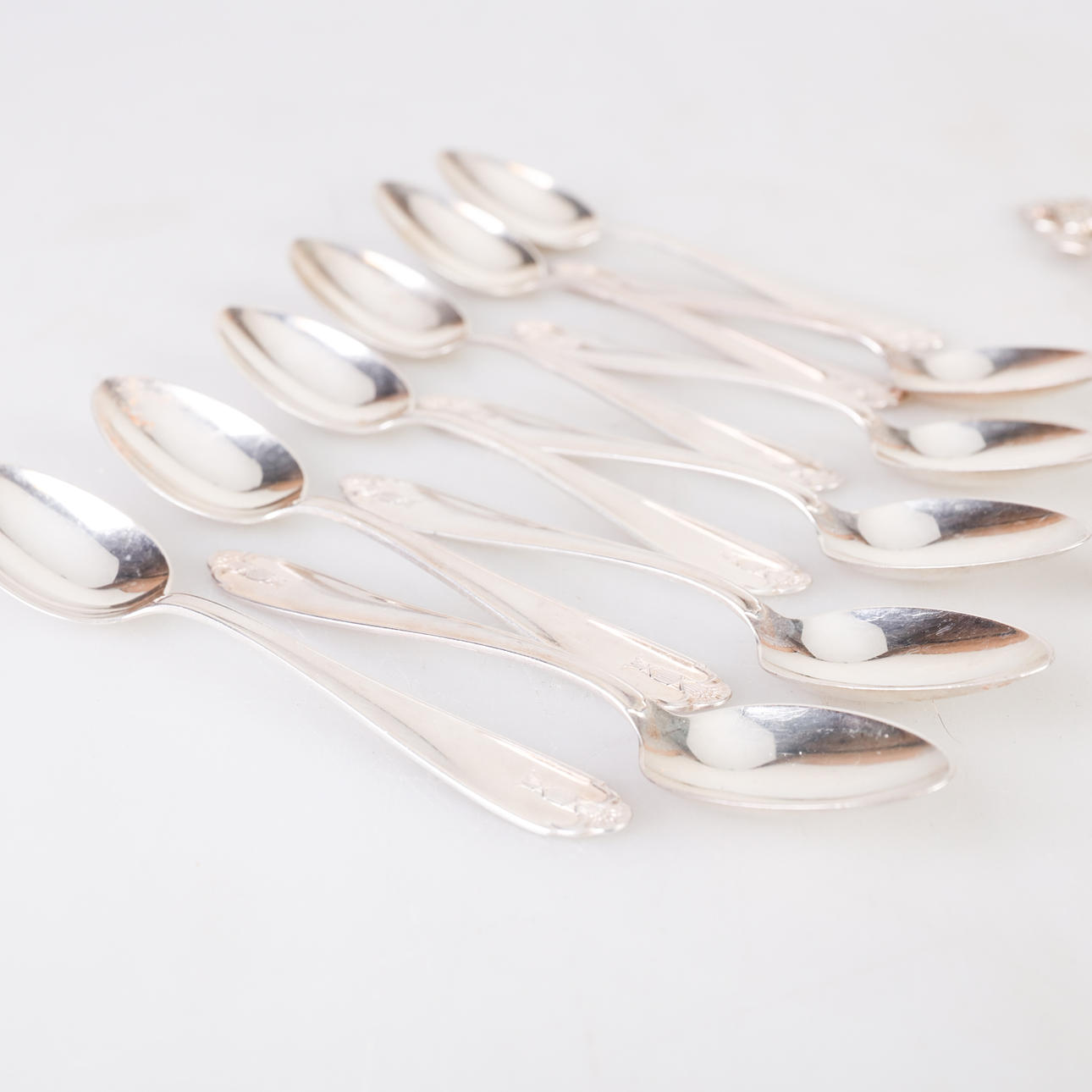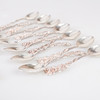13 coffee spoons 149 grams length 10.5 cm (rose) 1 tongs, 1 cake spatula, 1 spoon total 83 grams (rose) 11 coffee spoons 153 grams length 12 cm.