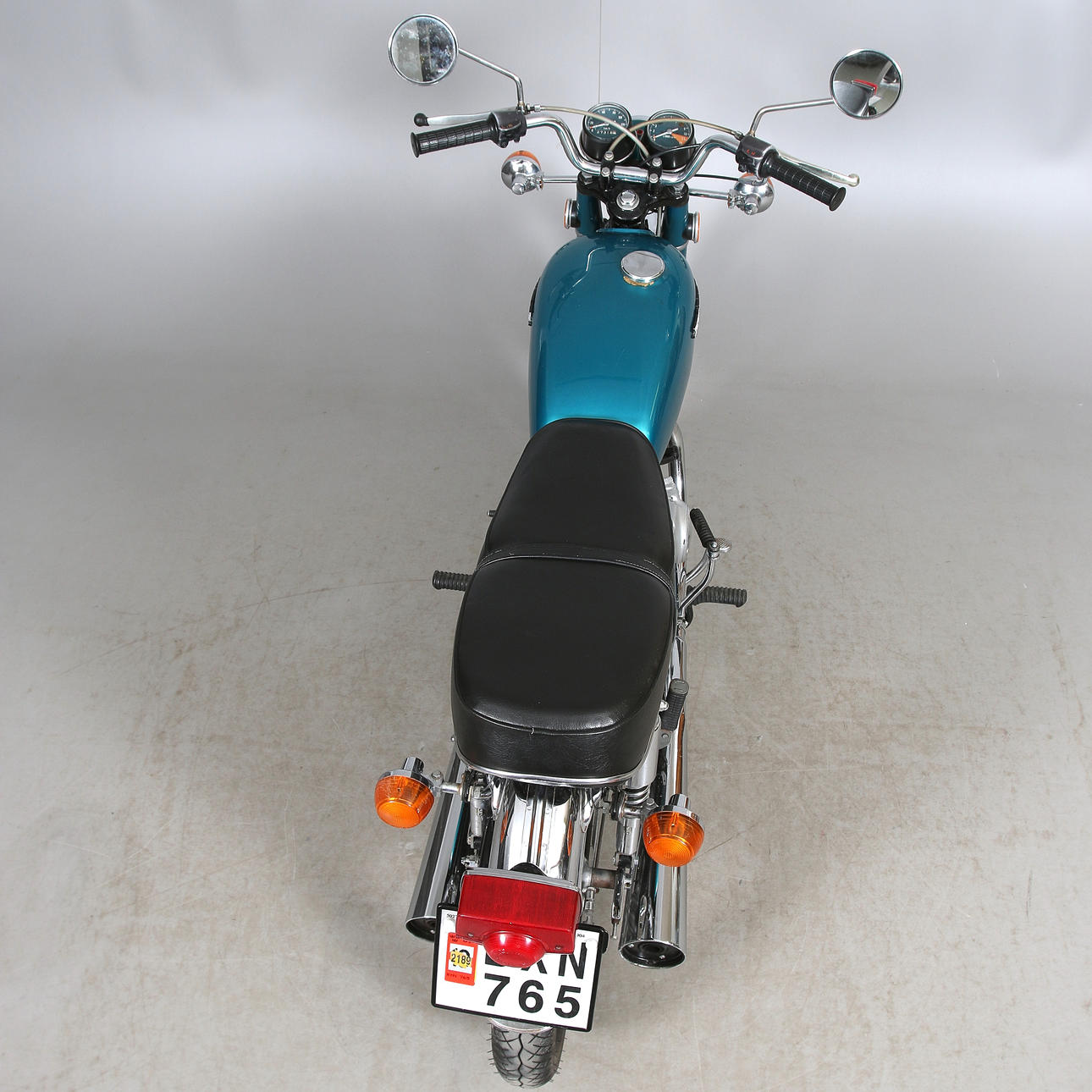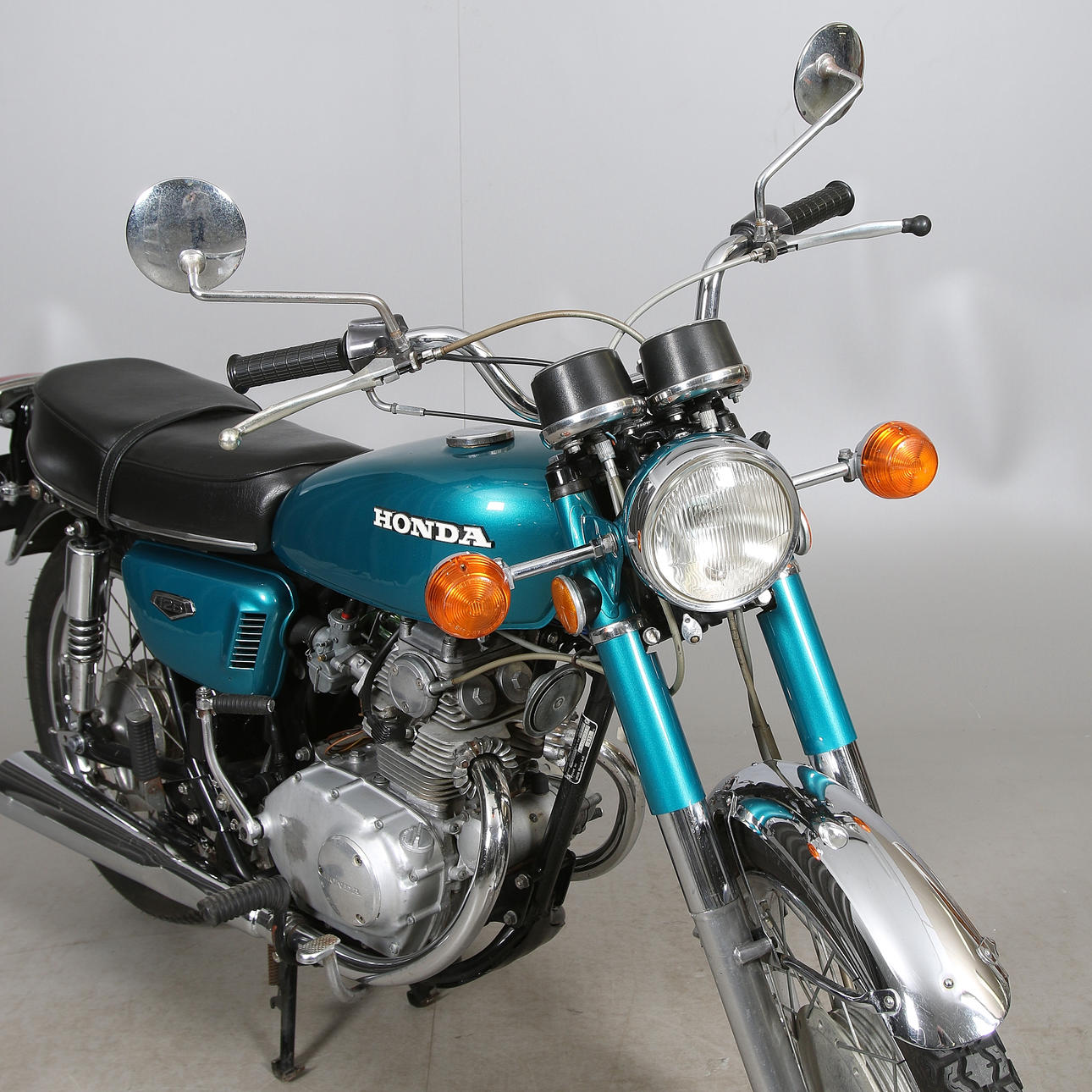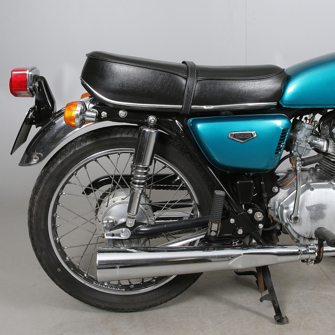 Honda CB 125 cc, 1973. Lacquered in green/blue tone. Renovated in 2018. Stored in warm garage. Key available.