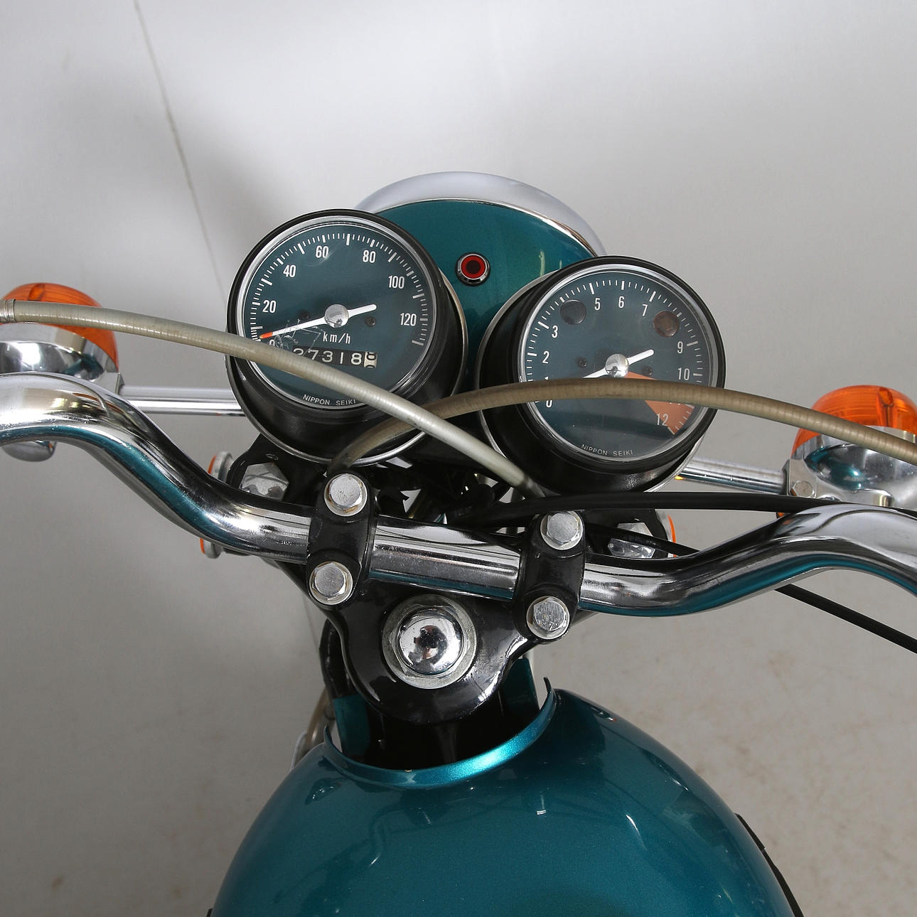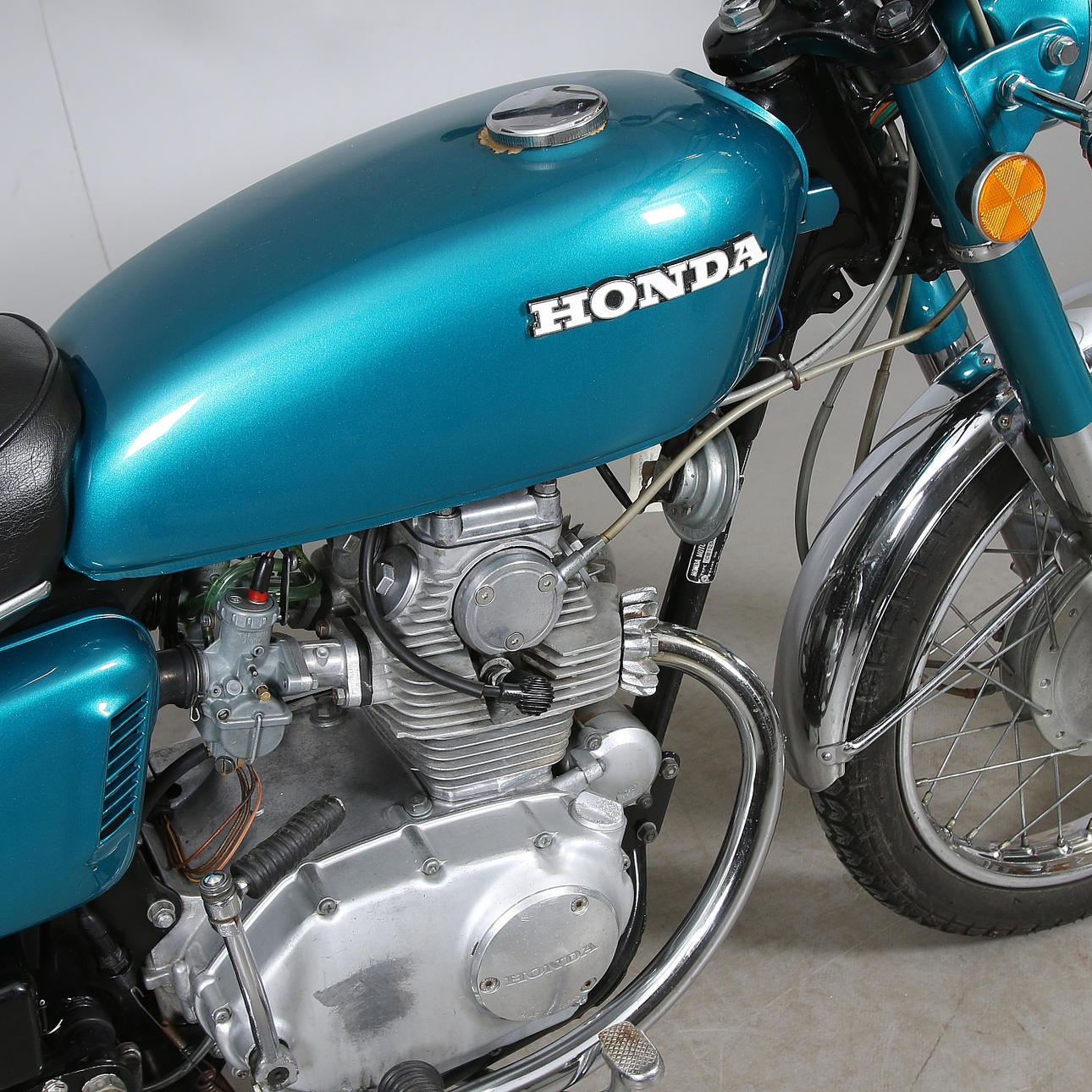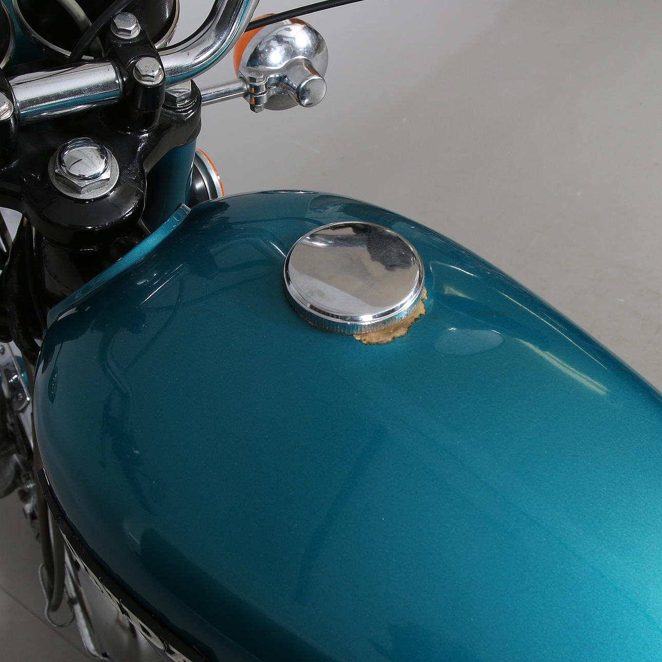 Honda CB 125 cc, 1973. Lacquered in green/blue tone. Renovated in 2018. Stored in warm garage. Key available.
