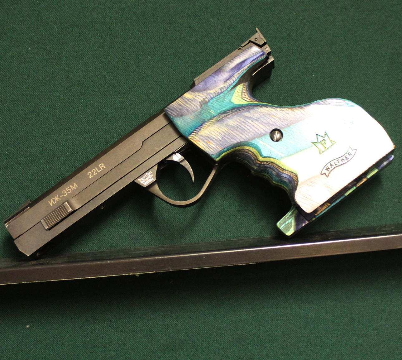 Pistol German Semi-automatic. Make Walther. Courage. KSP 200 Caliber 22lr. Extension no. M010393. Spout length 15cm. Adjustable sight.