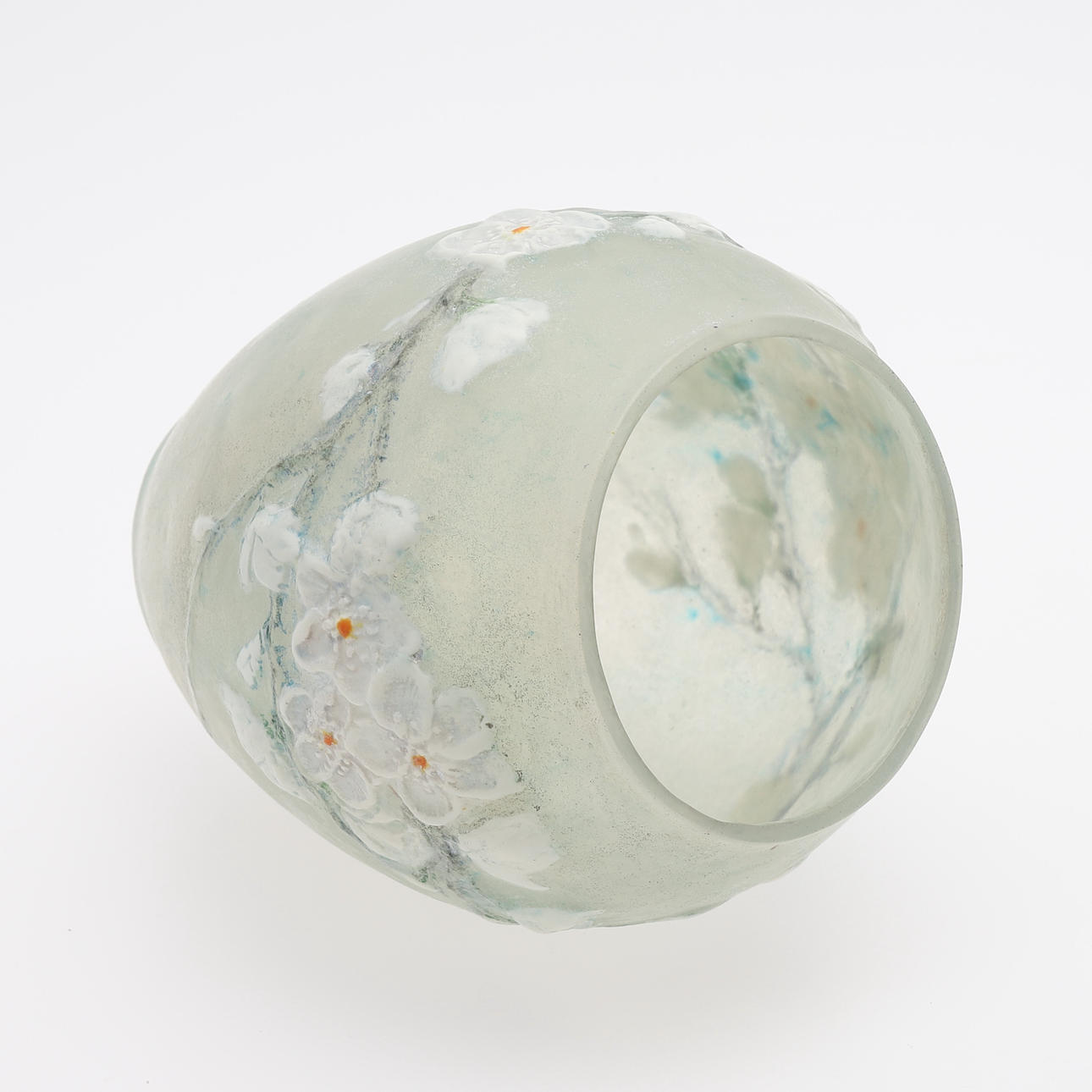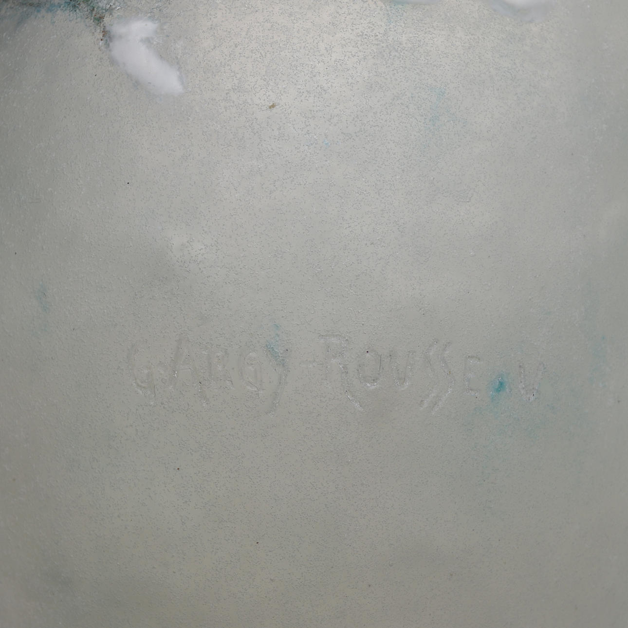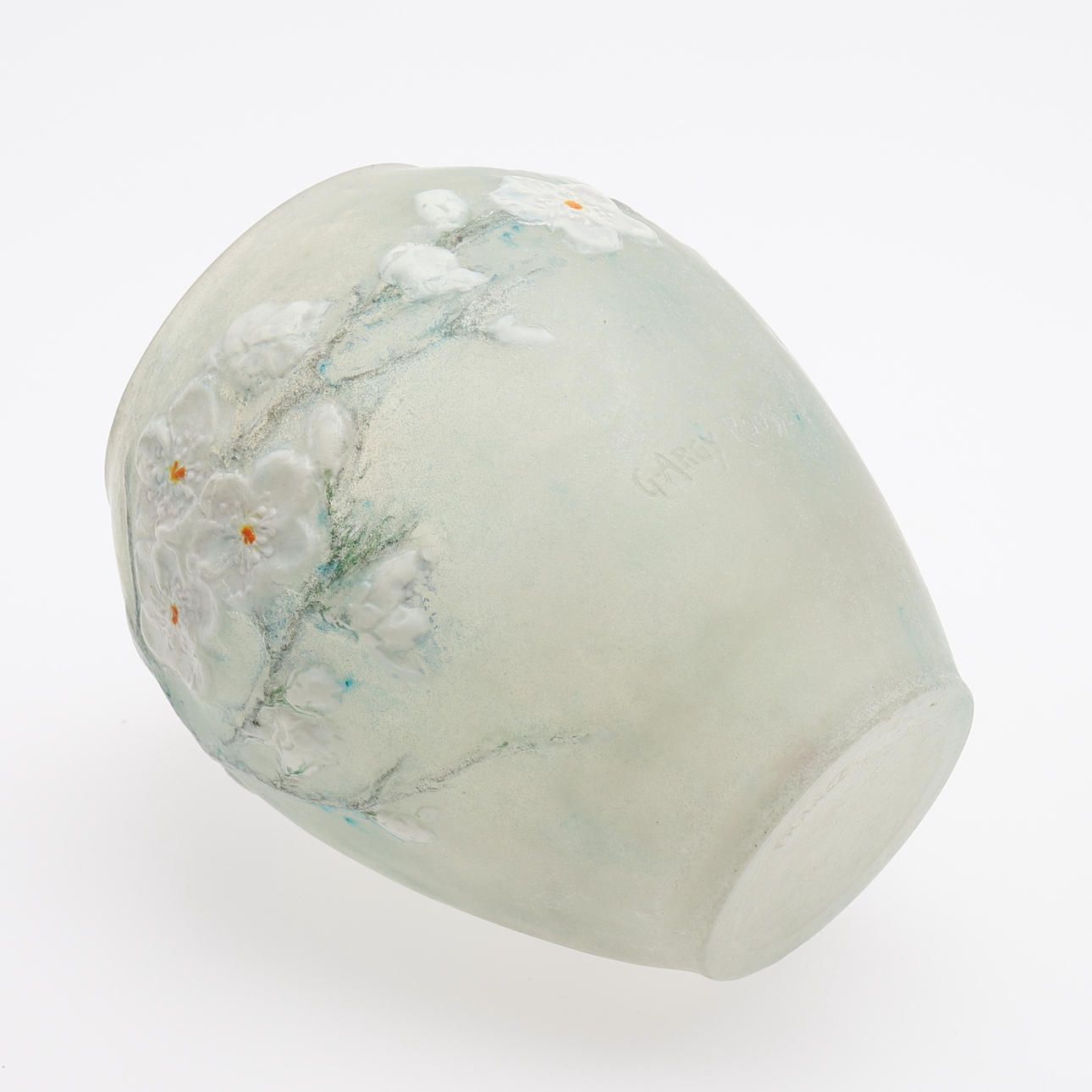 "Fleurs de peaches". Art Nouveau. Glass, pâte-de-verre technique, slightly green colored with blossoming peach sprig decoration, signed "G. ARGY-ROUSSEAU" and marked FRANCE. Designed in 1920. Height 14 cm.