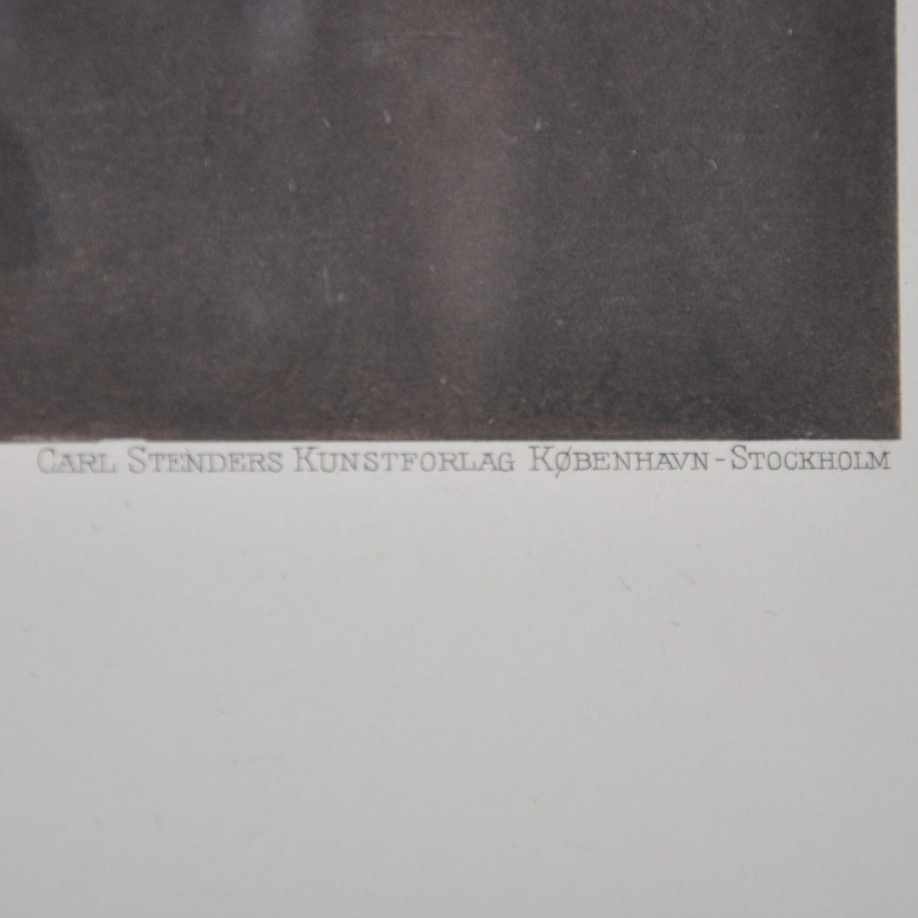Print with watercolor painting after Louis Asher Carl Stenders Kunstförlag Copenhagen-Stockholm 85 cm x 68 cm with frame Mahogany stained wooden frame.