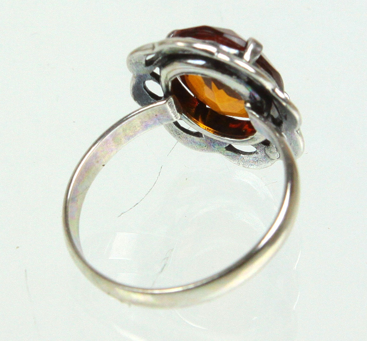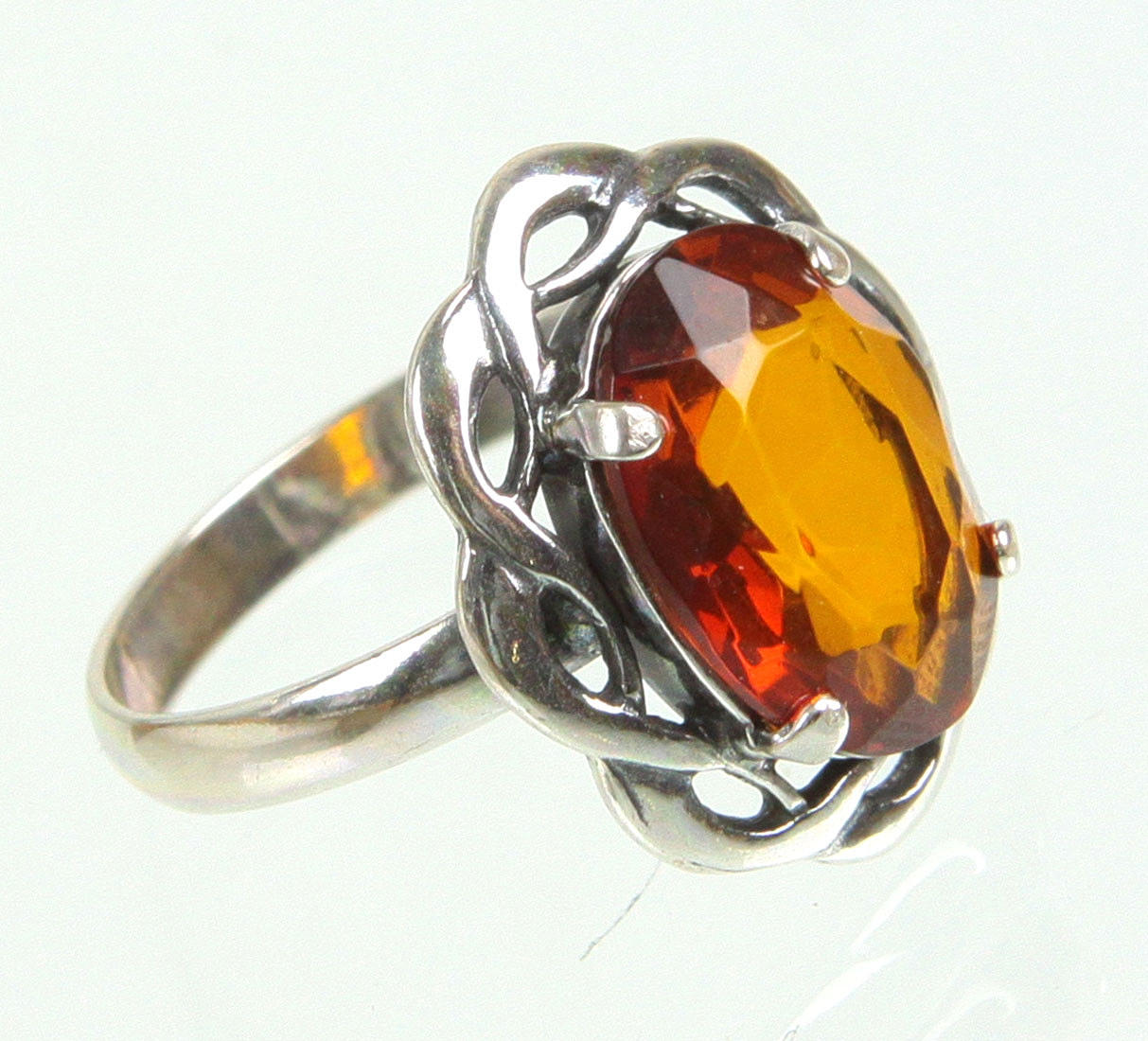 Amber ring made of 925 silver, also hallmarked in the ring band, set with an oval faceted amber, ring head 16 x 20 mm, ring size 60, weight 3.4 grams.