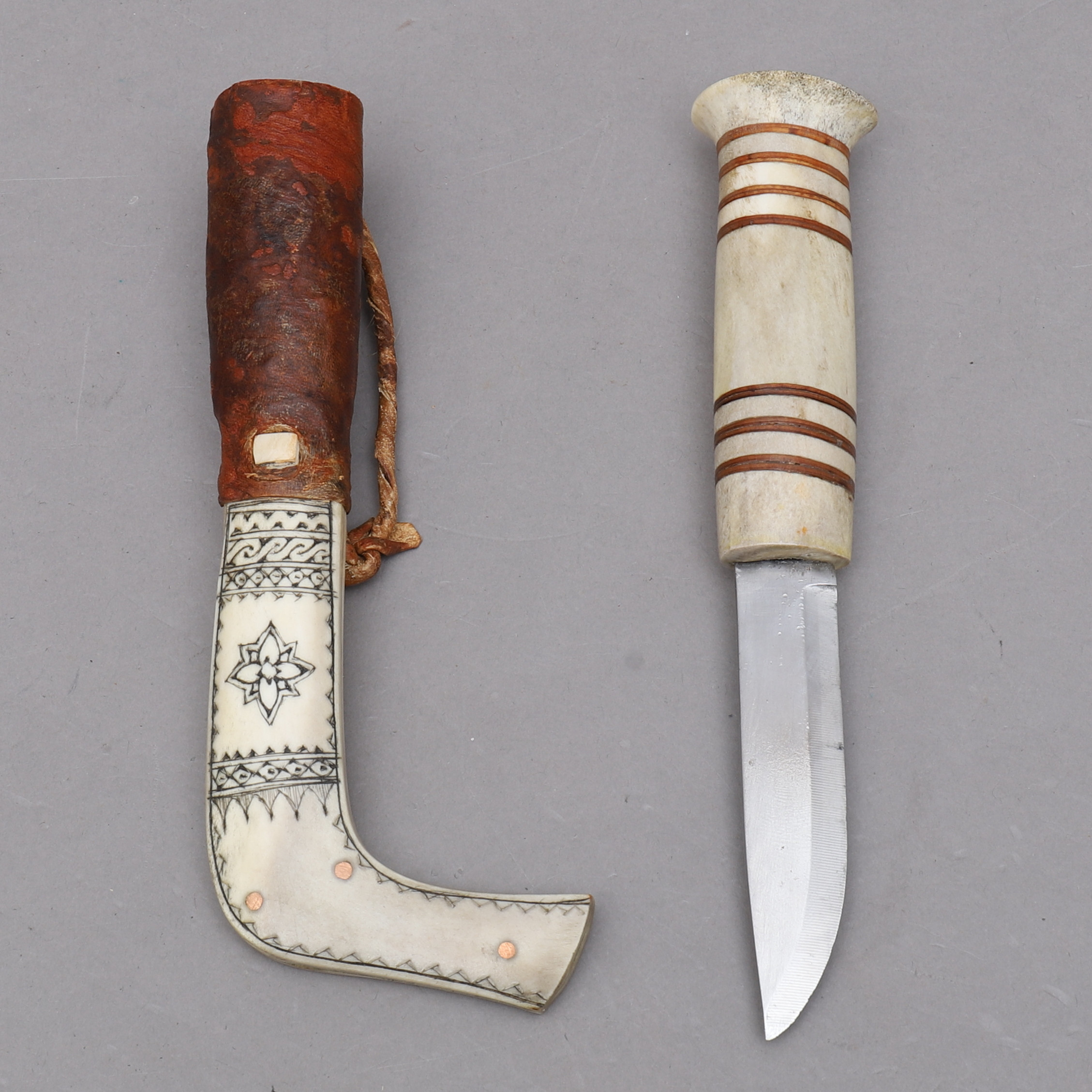 1484546. SAME KNIFE, reindeer horn, signed H.