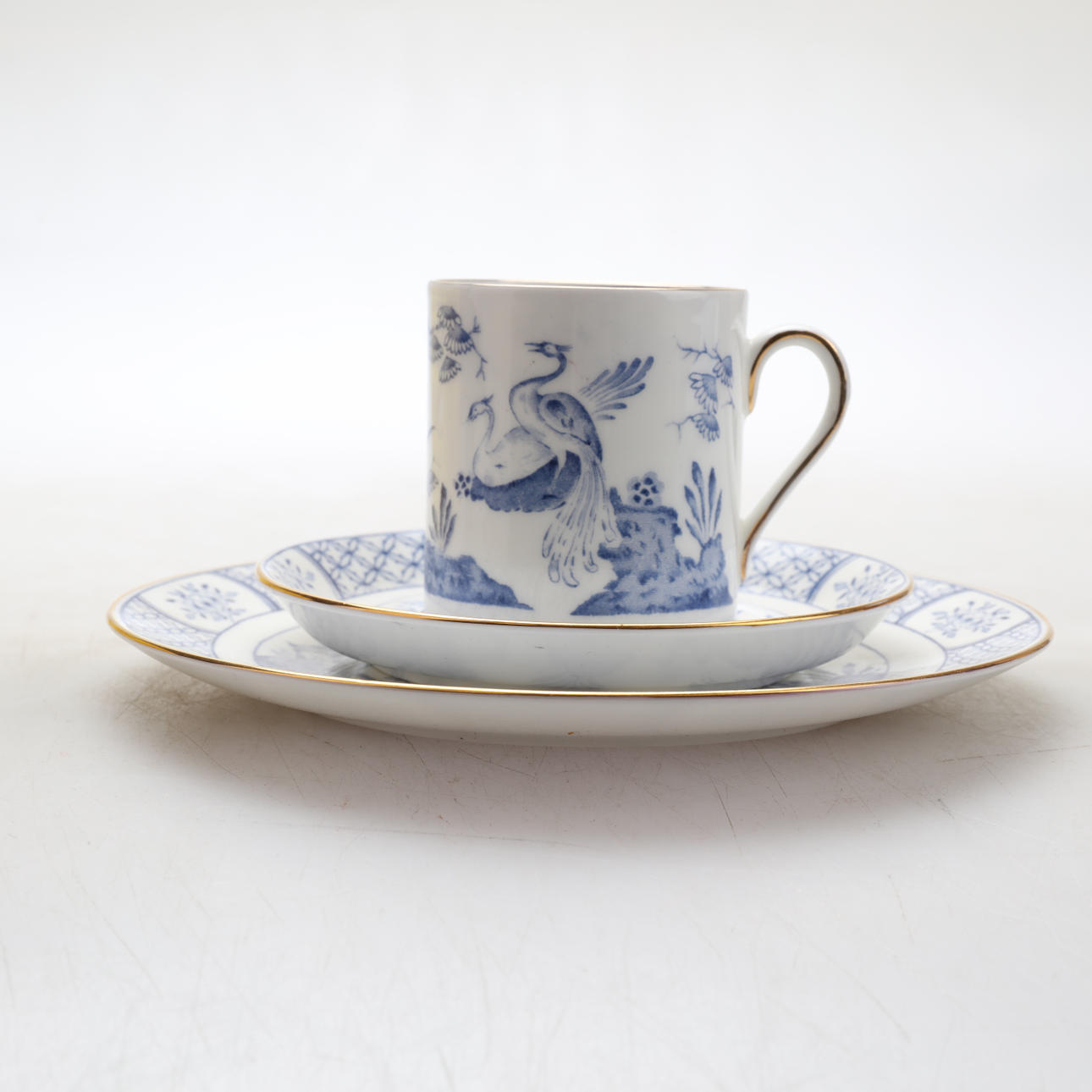 4 plates approx. ø 16.5 cm 7 plates approx. ø 12 cm 5 cups approx. ø 5.5 cm, 6.5 cm high.