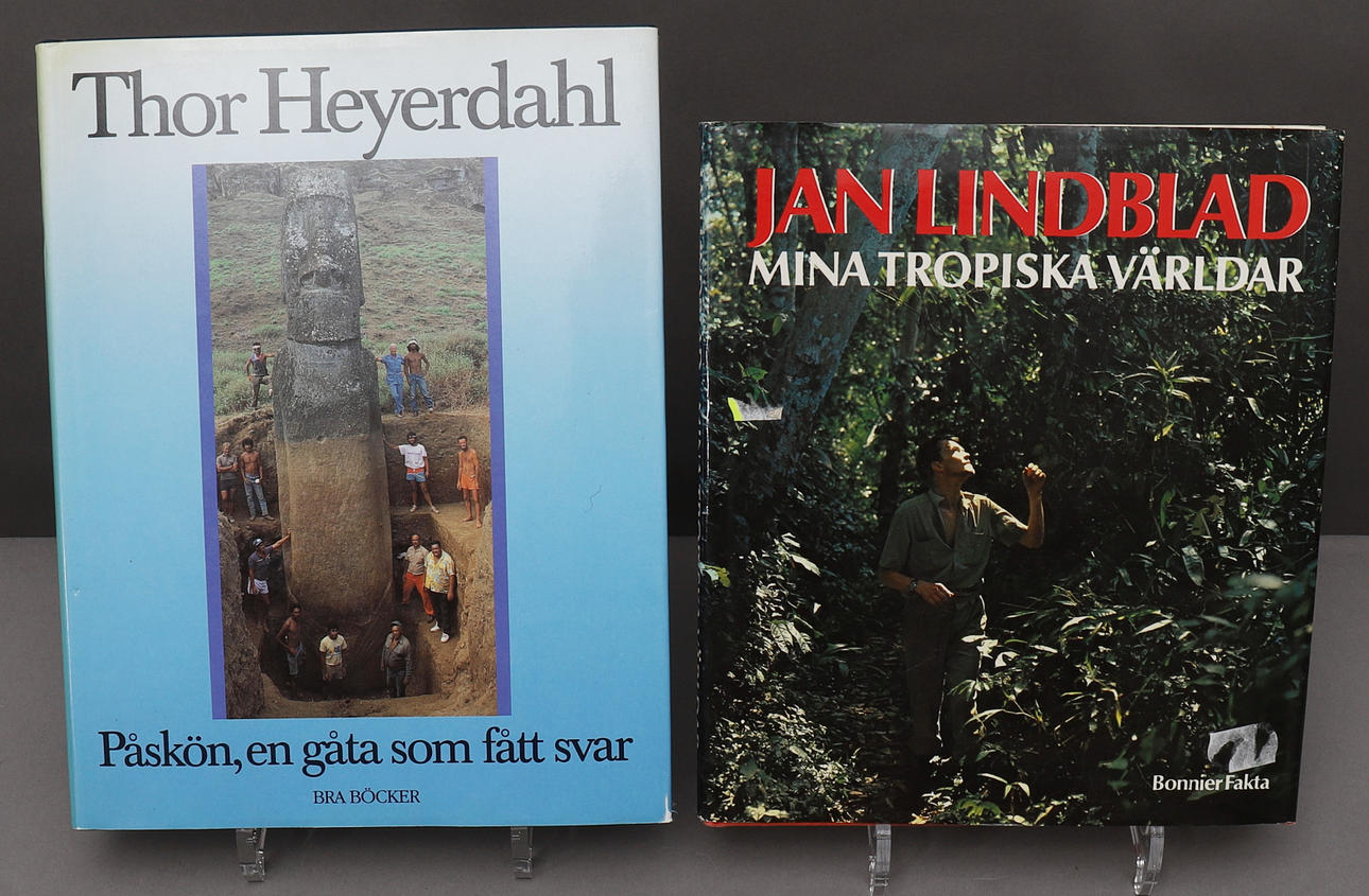 Mina Tropiska världar, Jan Lindblad, 1984, 140 pp. Easter island, a riddle that got an answer, Thor Heyerdahl, 1989, 256 pp. Utterliv, Kenneth Johansson & Anna Roos, 2008. 144 p.