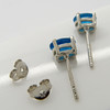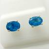 Each ear stud earring in this pair is set with an oval-cut neon blue apatite gemstone, in 4 claws.