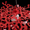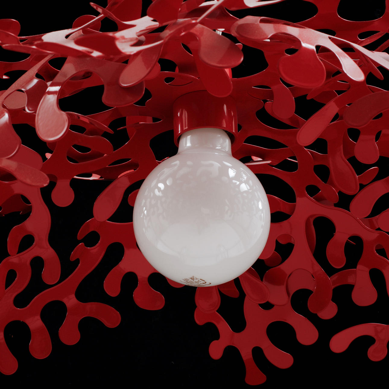 Red lacquered metal. Diameter approx. 55 cm, height 25 cm.