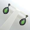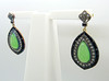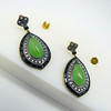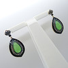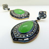 In an unusual design, the principal stone in each earring is a tear-drop shaped, polished cabochon green jade gemstone.
