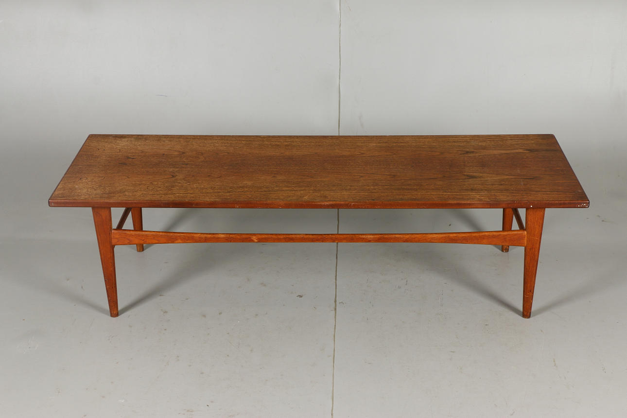 Coffee table in teak with length 152, width 53, height 40 cm.