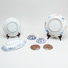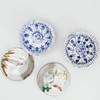 2 plates, ø 21-25 cm 1 platter, length 28.5 cm 2 bowls on feet, height 4.5 cm 2 dishes, raku, ø 10 cm.