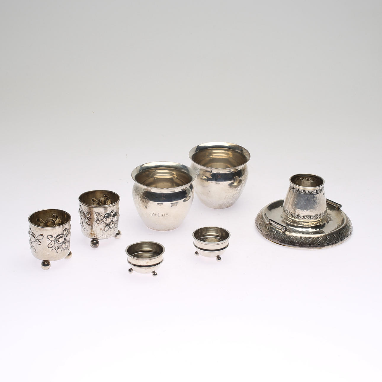 SILVER OBJECTS, 7 pcs, including Sweden and England.