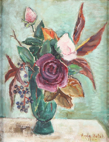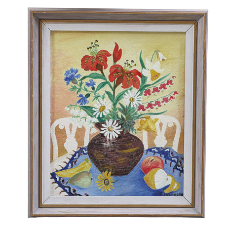 MARC CHAGALL. After. Still life with flowers and figures, color lithograph, signed in the print.