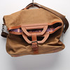 Canvas and leather. Detachable shoulder strap. 2 inner compartments with zipper. Width about 54 c. Height approx. 37/55 cm.