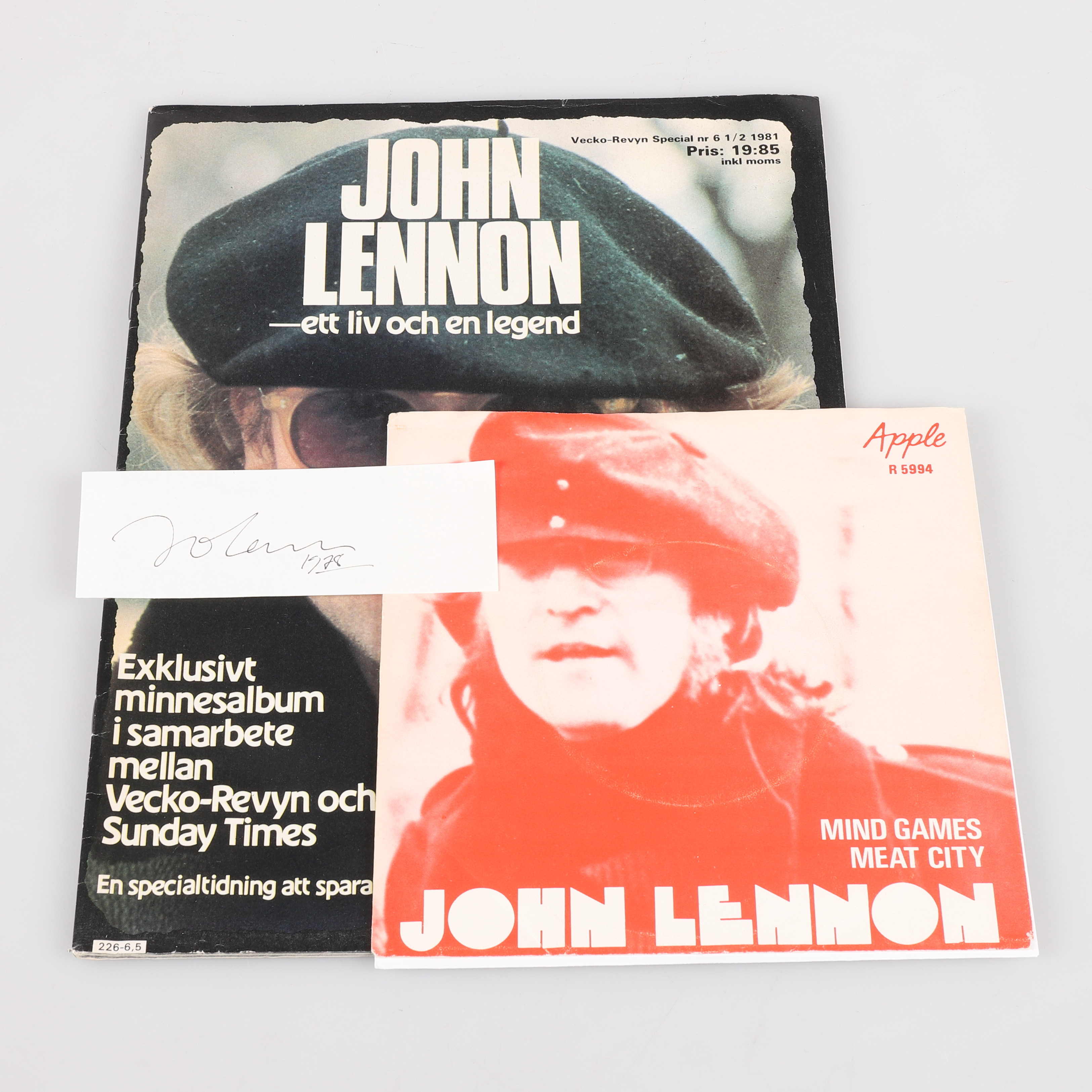 1539403. AUTOGRAPH, John Lennon, as well as memorabilia.