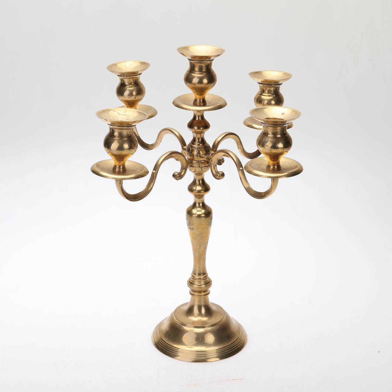 Candelabra, 4 arms, with space for 5 candles, brass.
