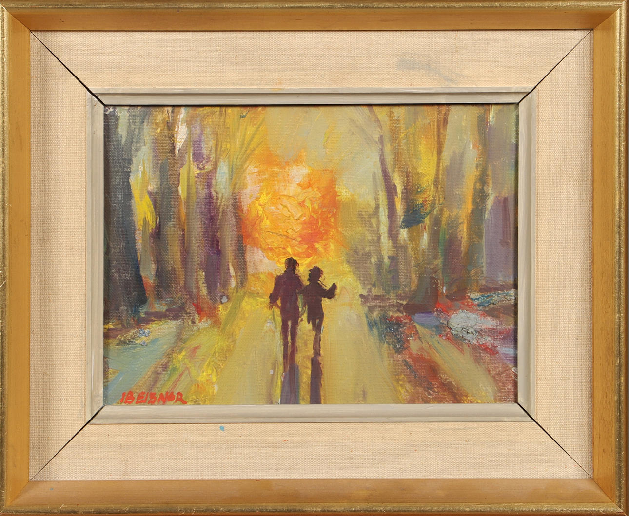 IB EISNER. Old men on a walk, oil on canvas, signed.