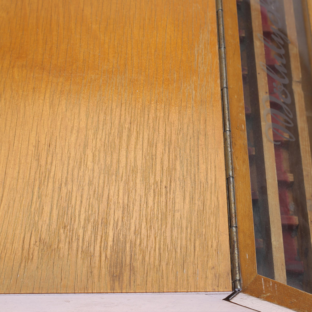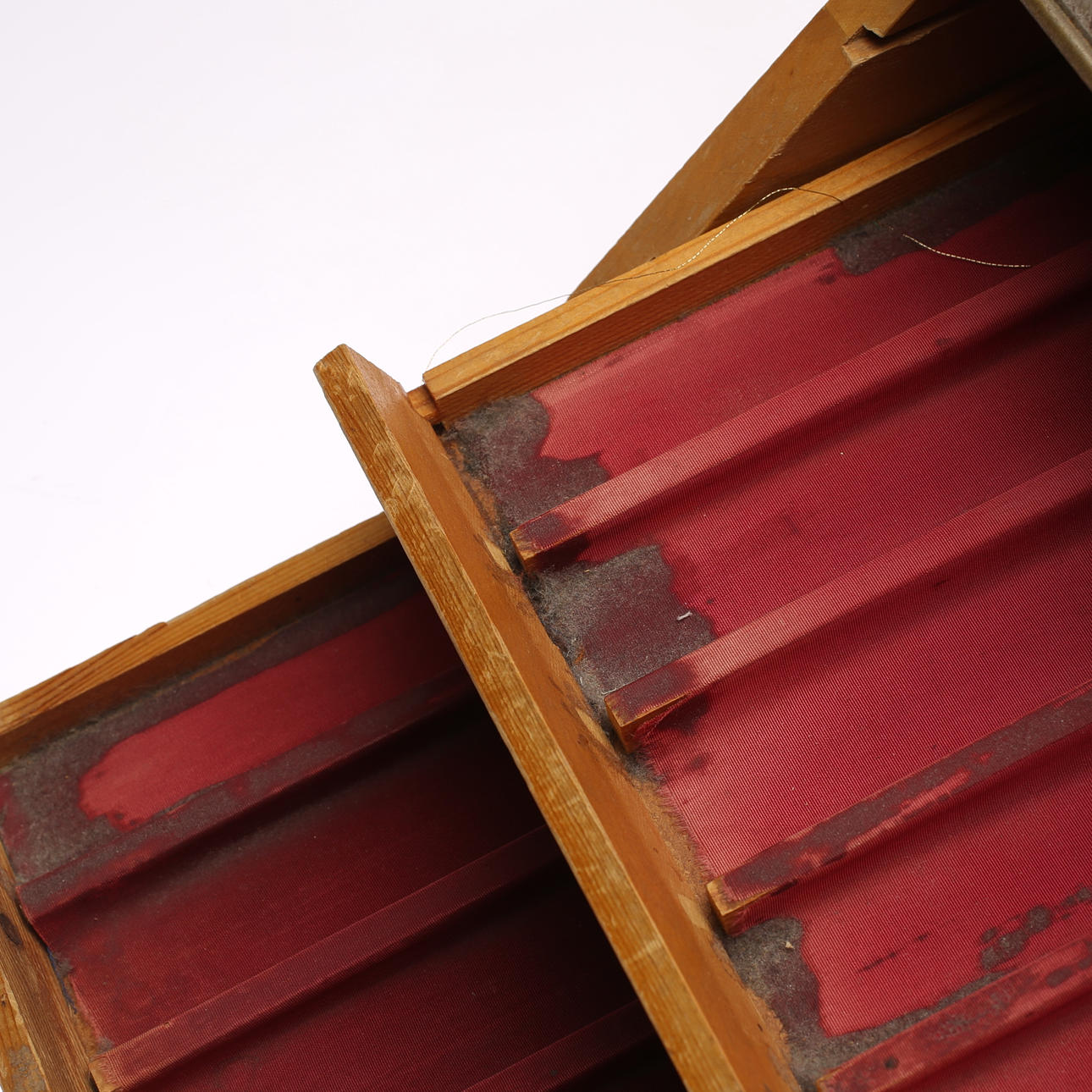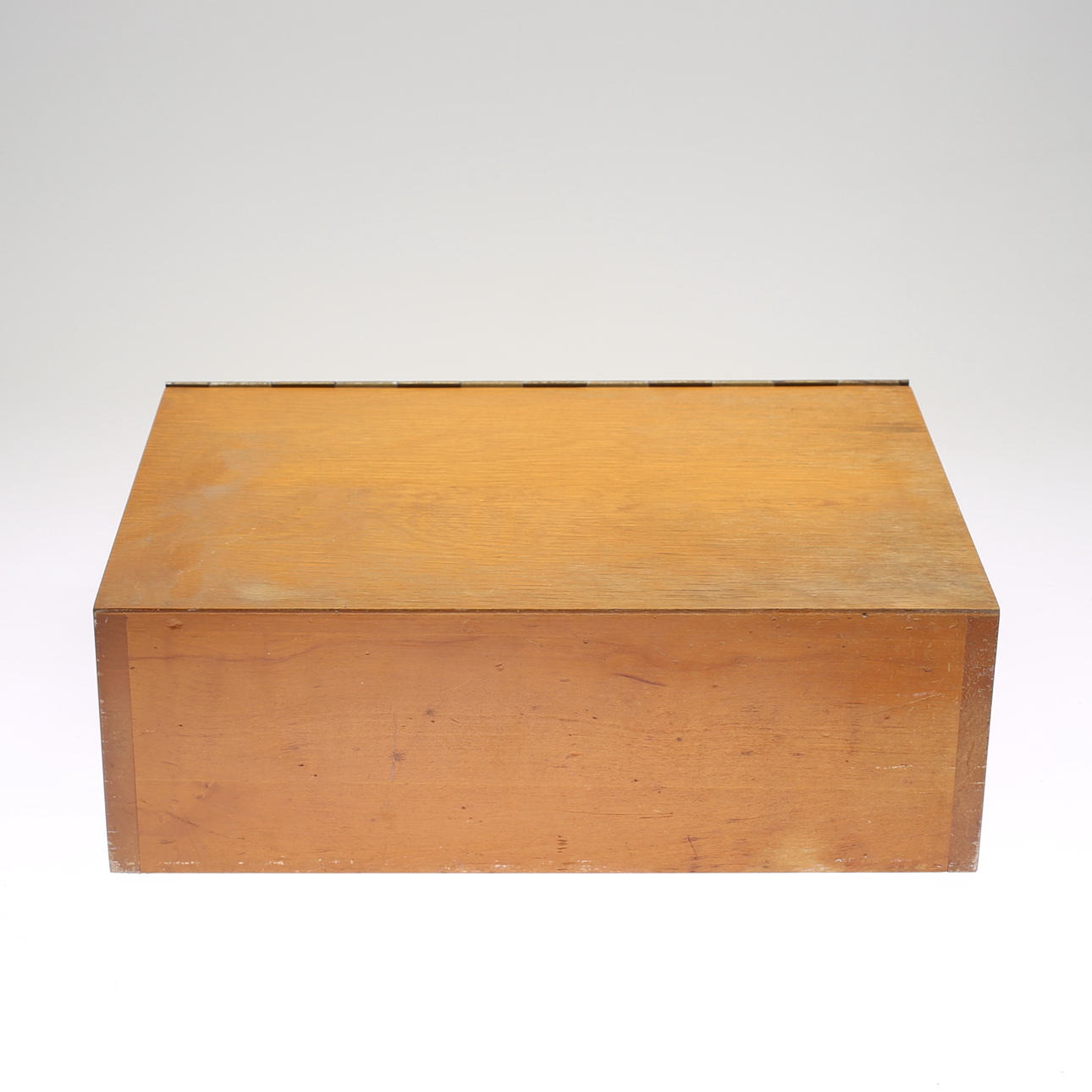 Normal wear and tear. Dry cracks. Drawer strips slightly loose. A box is missing.