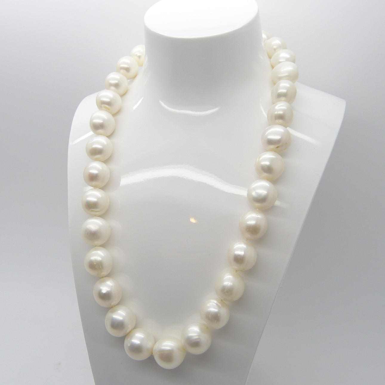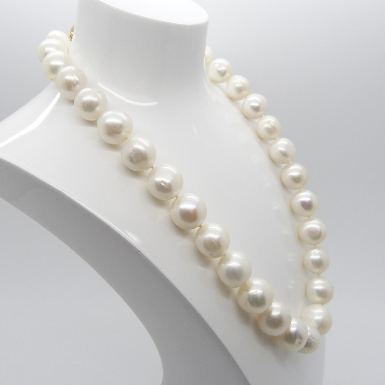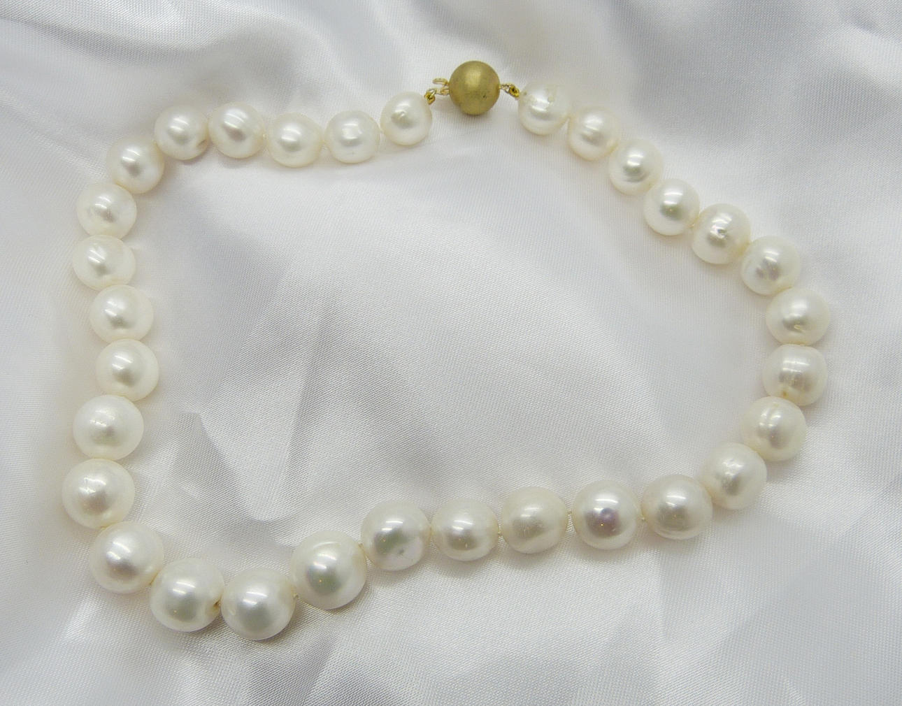 The cultured pearls in this necklace range in diameter between 11 - 13 mm, approx.