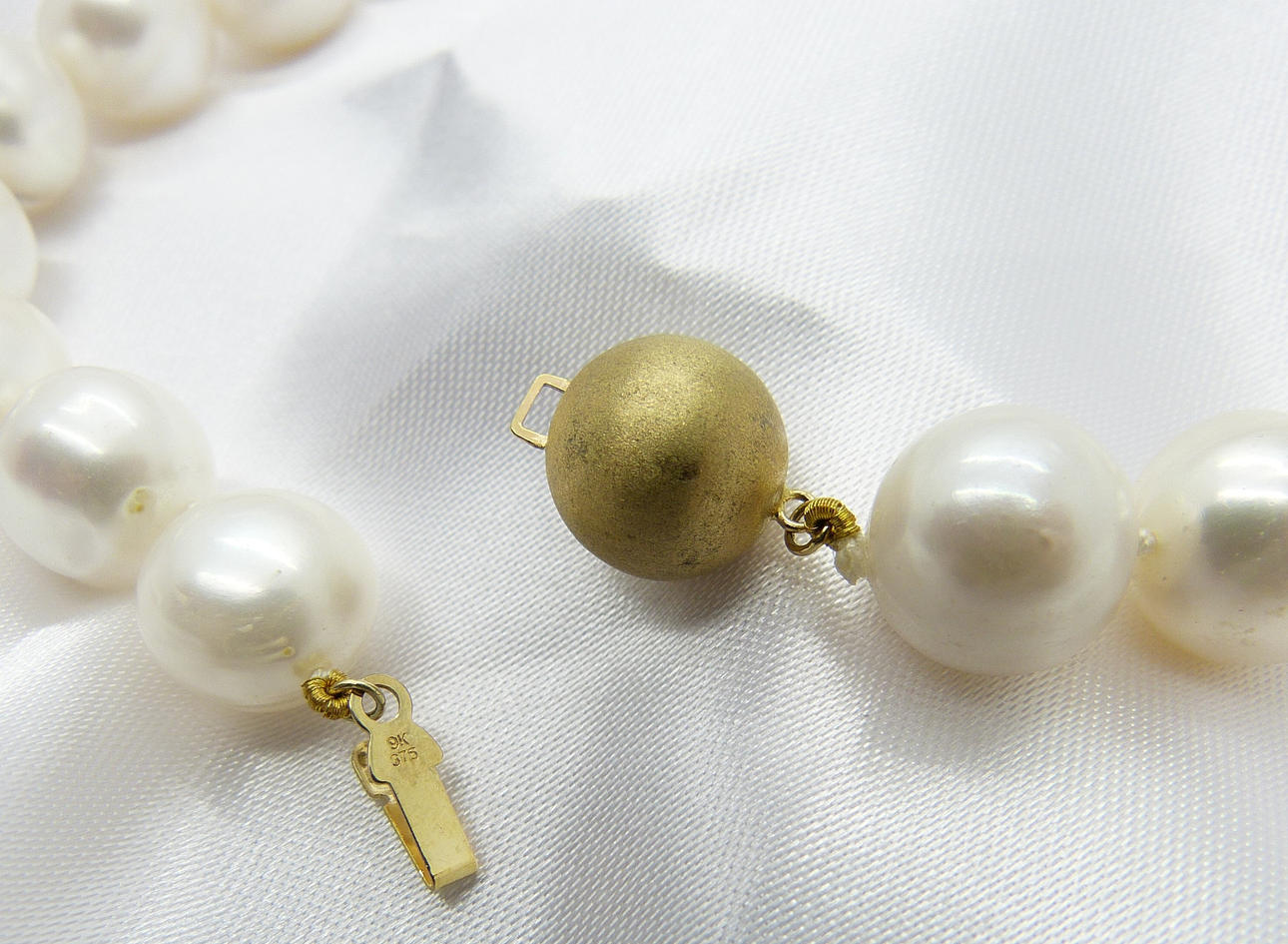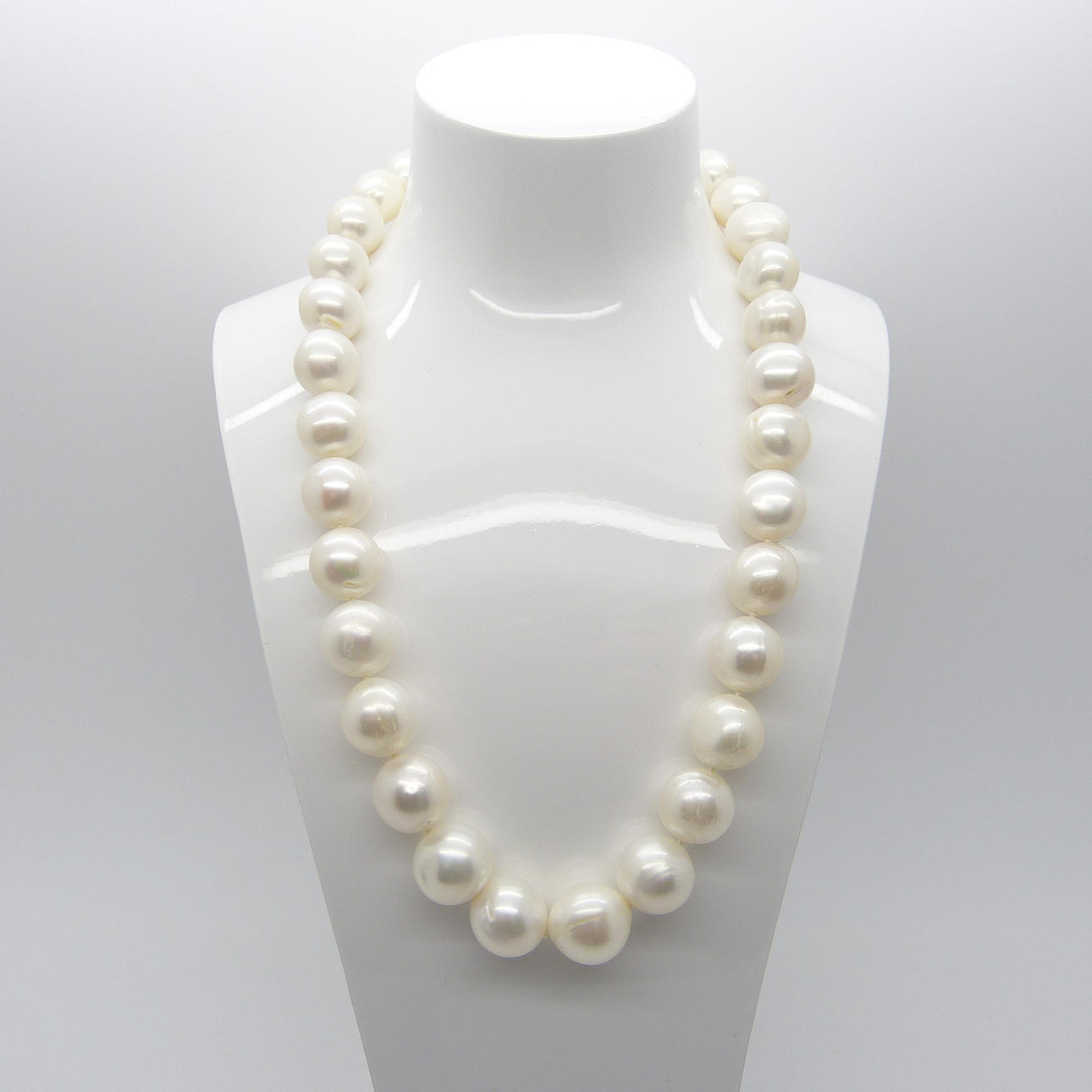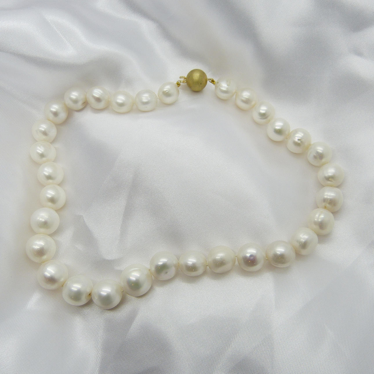 The cultured pearls in this necklace range in diameter between 11 - 13 mm, approx.