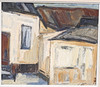 1556735. Unknown artist. House facade, oil on canvas, unsigned.