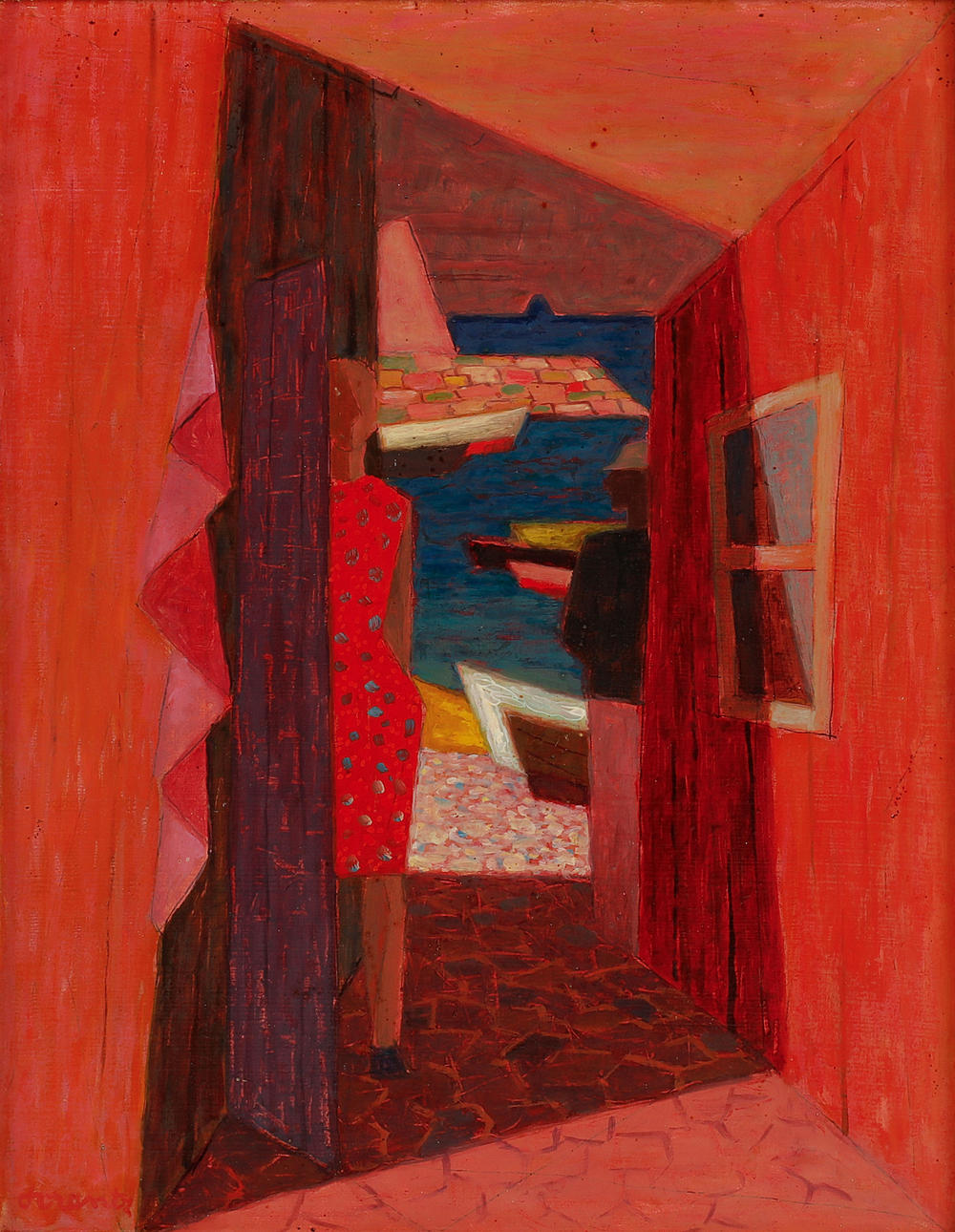 1557589. WALDEMAR LORENZON. "The Gate" Oil on Board, signed.