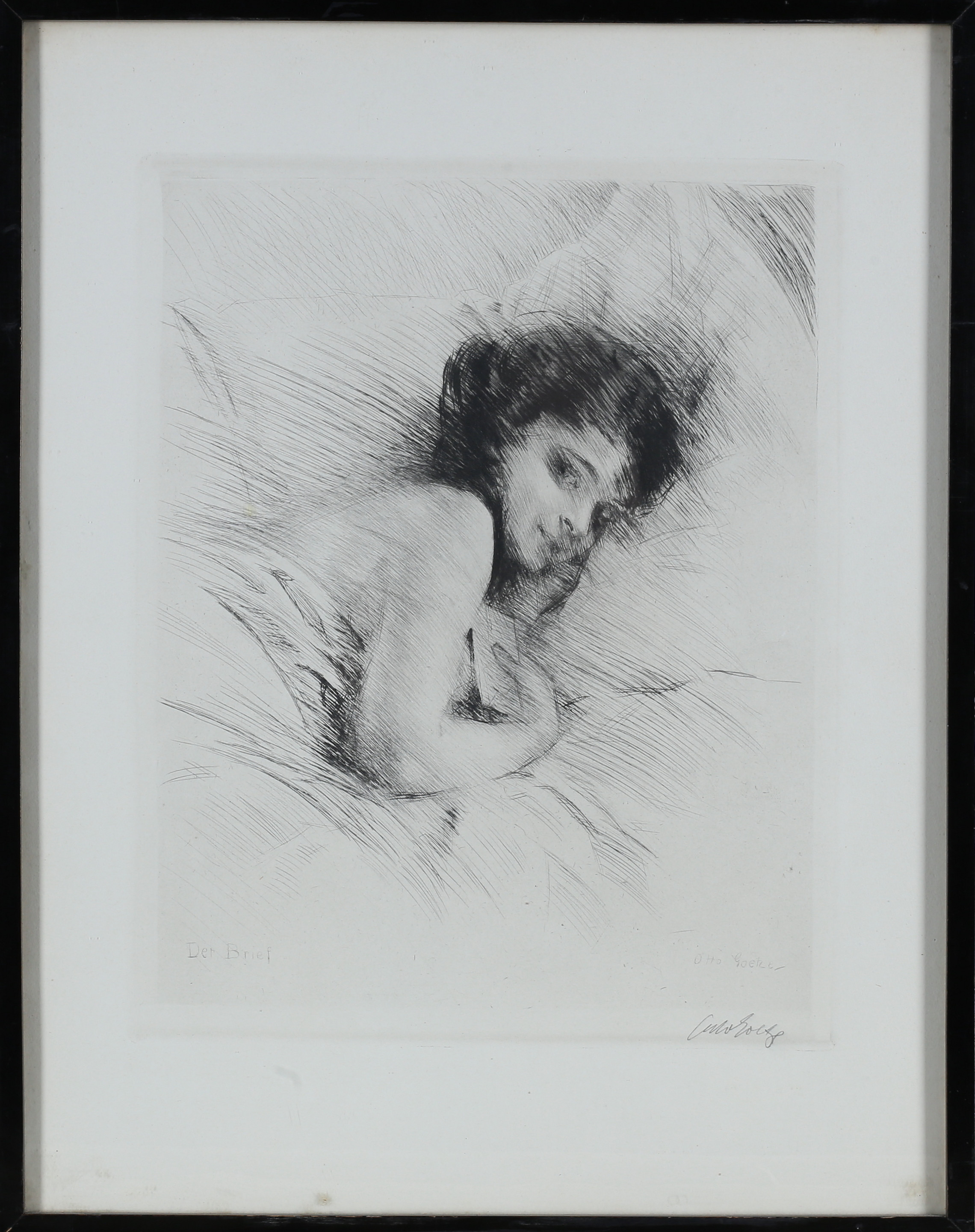 1564207. OTTO GOETZE. "Der Brief", etching, signed.