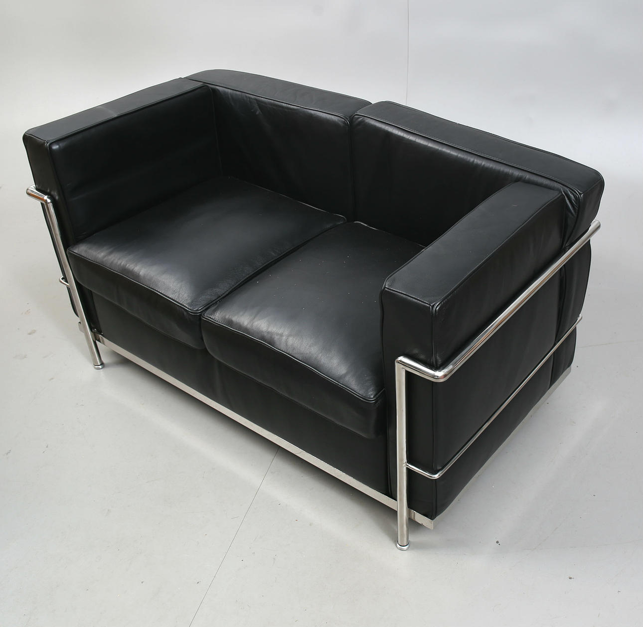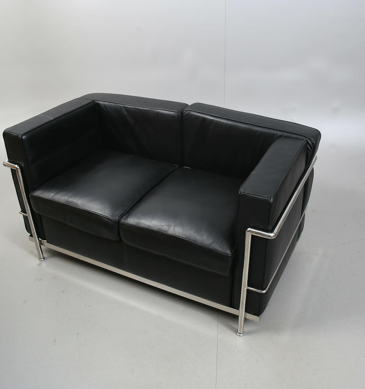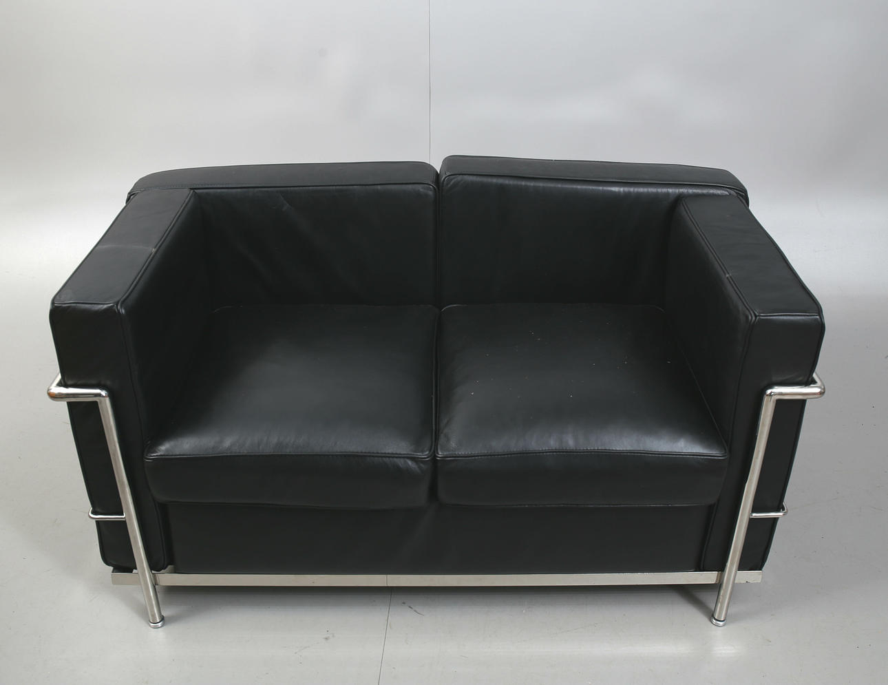 1566065. LÉ CORBUSIER. After. Sofa, chrome and black leather, 1900-2000s.