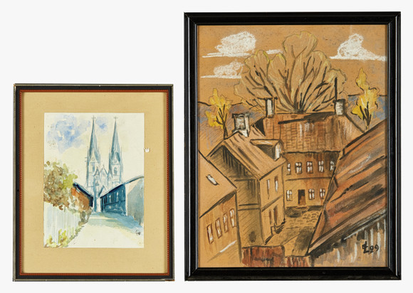 1566275. ERIK HOLMGREN. Gable motif, 5 pcs., watercolour, monogram signed EH and dated -90.