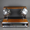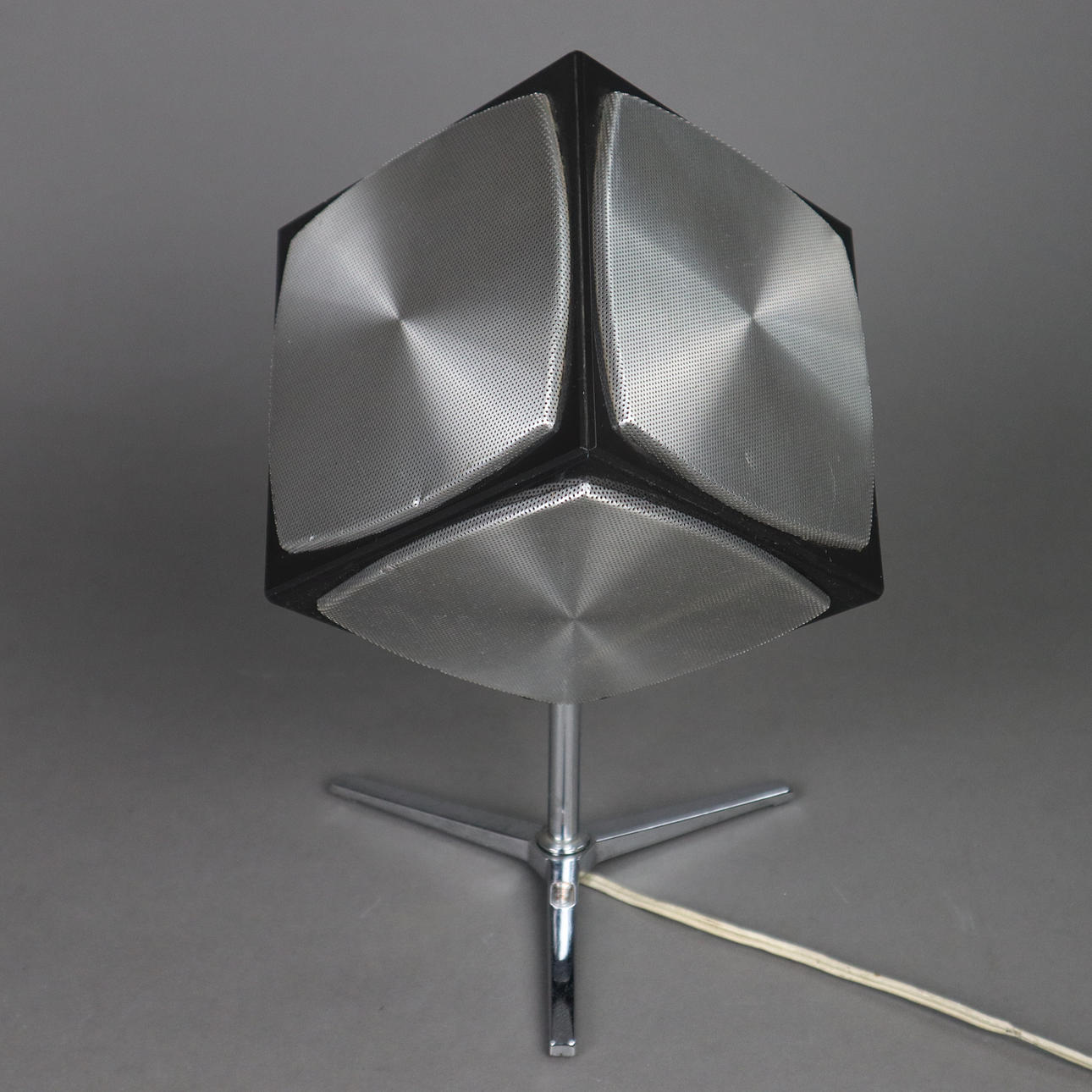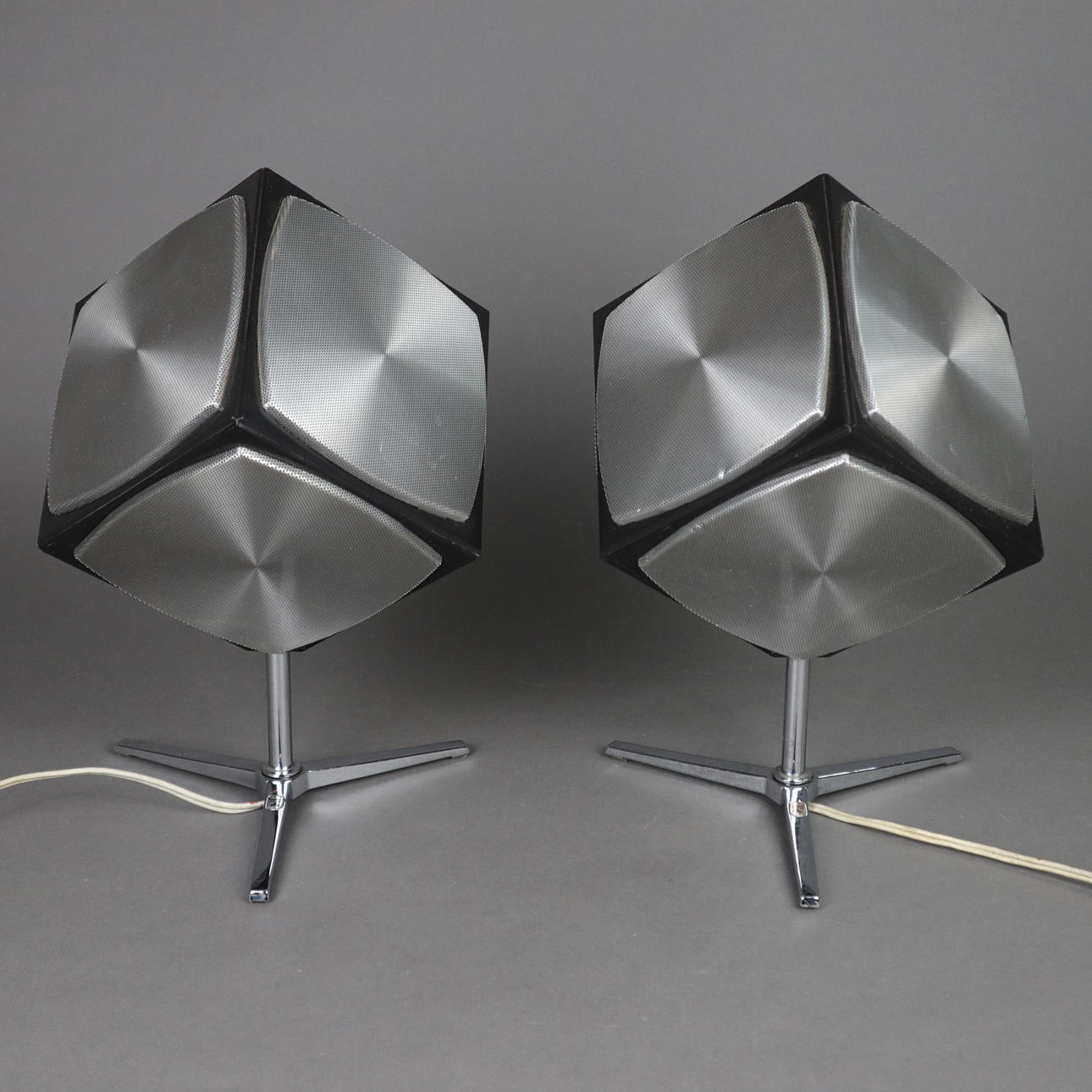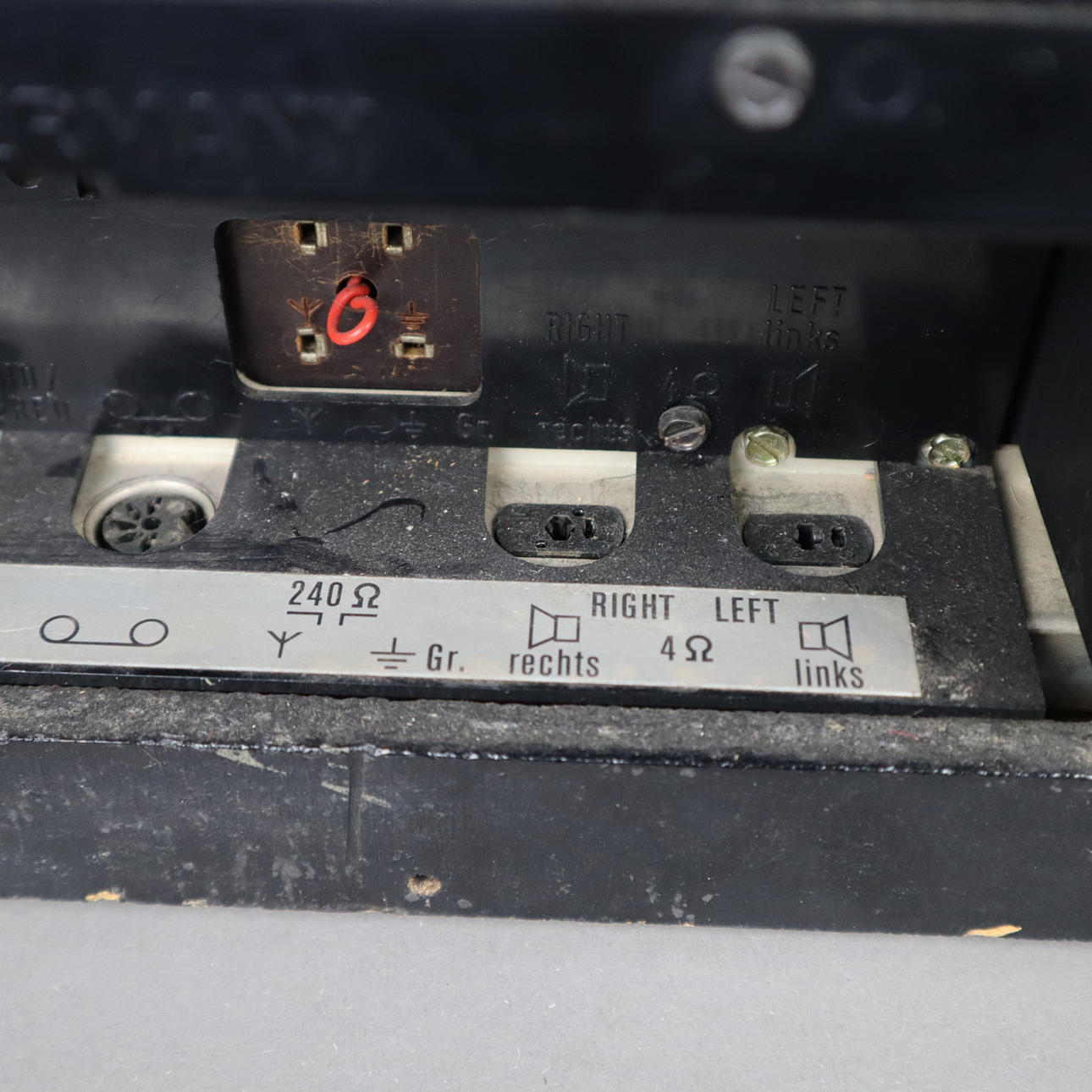 Consisting of: 1 hi-fi tuner amplifier, Grundig RTV 650 1 hi-fi duo bass box 401, Grundig 2 hi-fi spherical radiators, cube boxes on a tripod base Operating instructions attached.