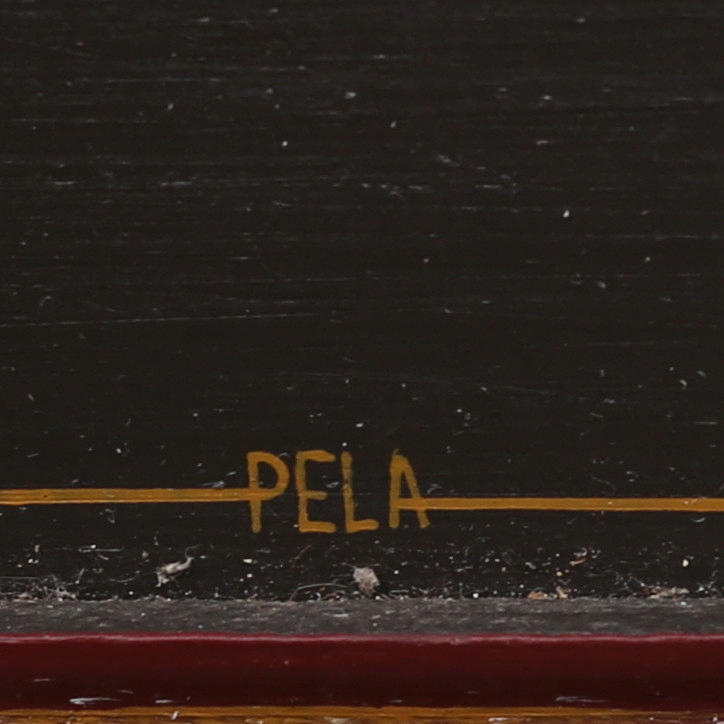 Painted wood, vintage style, signed Pela, dimensions: 75x52 cm.