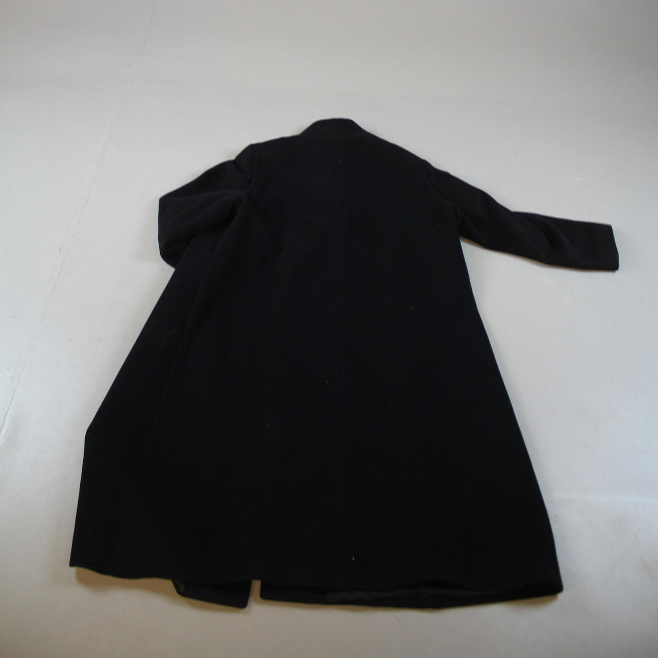 Concealed closure with buttons. The top button has been left visible. Stand-up collar and side pockets., size 48 Length approx. 120 cm, price marked SEK 5495, purchased in 2020.
