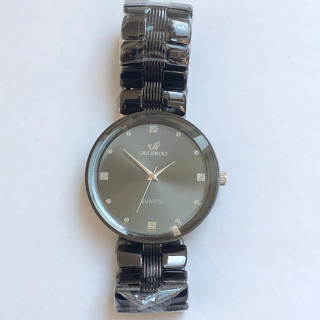 A black Orlendo wristwatch