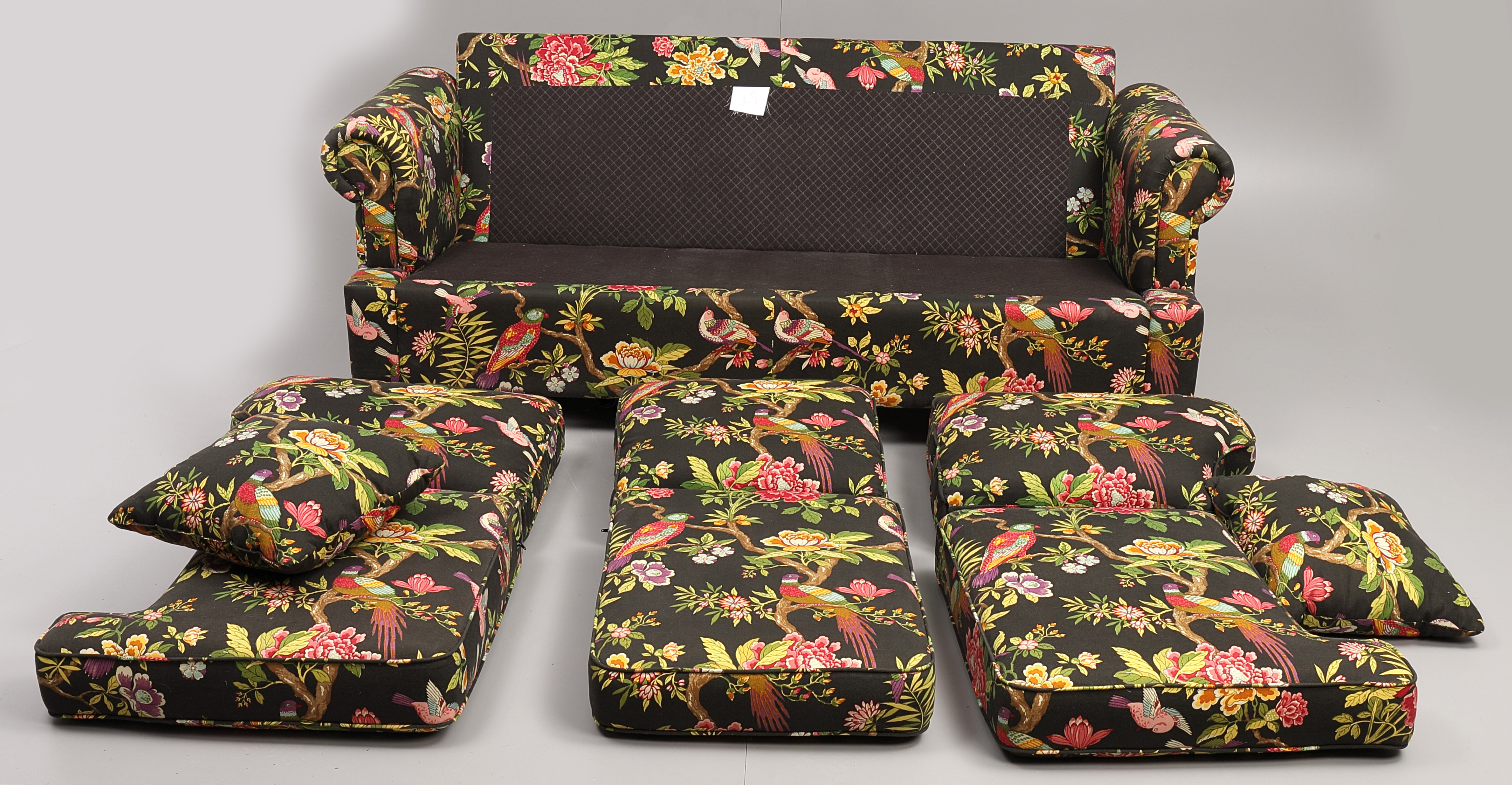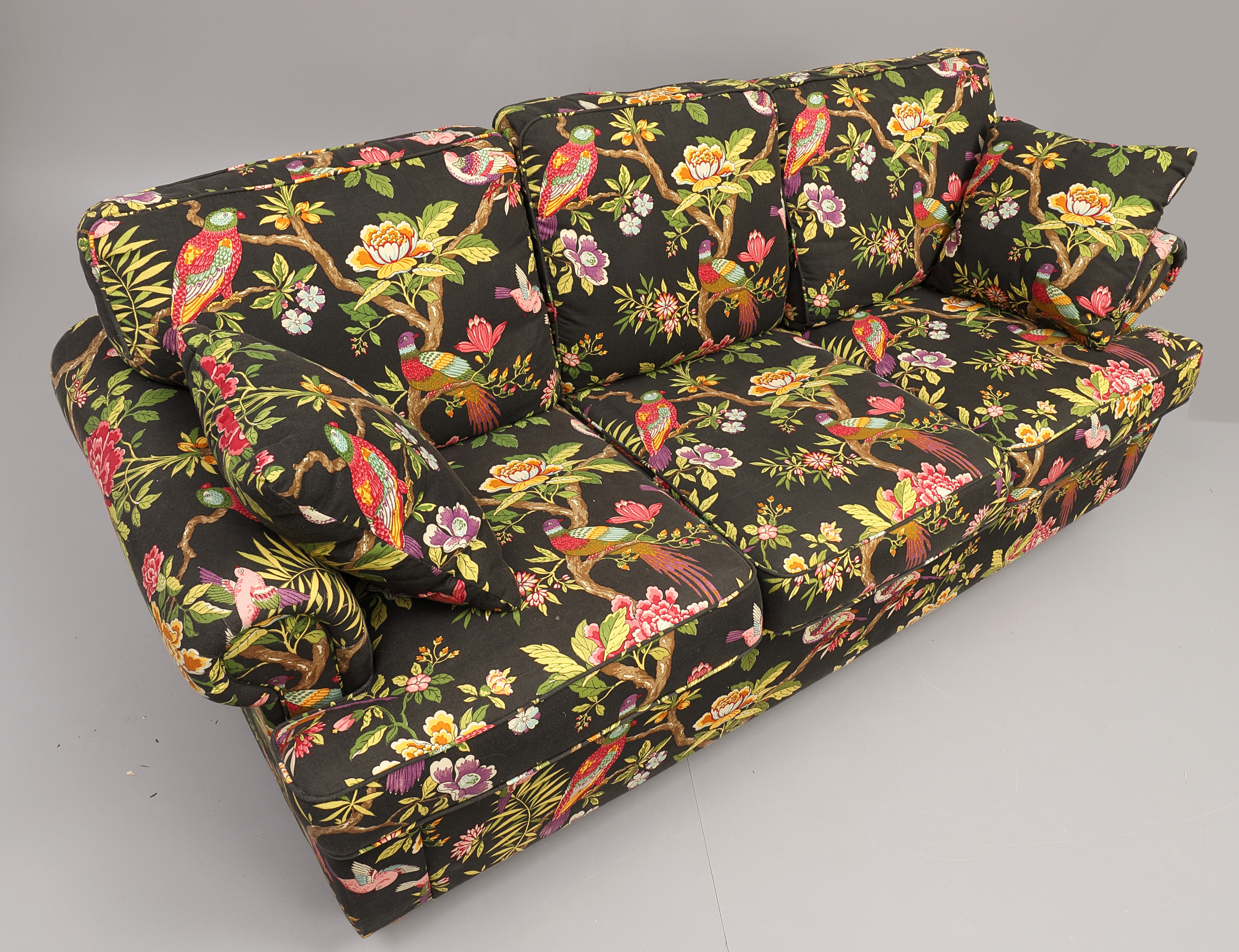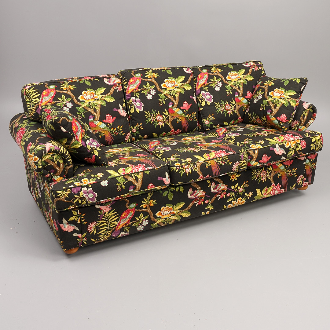 1585297. SOFA, 3 seater, contemporary, patterned textile upholstery.
