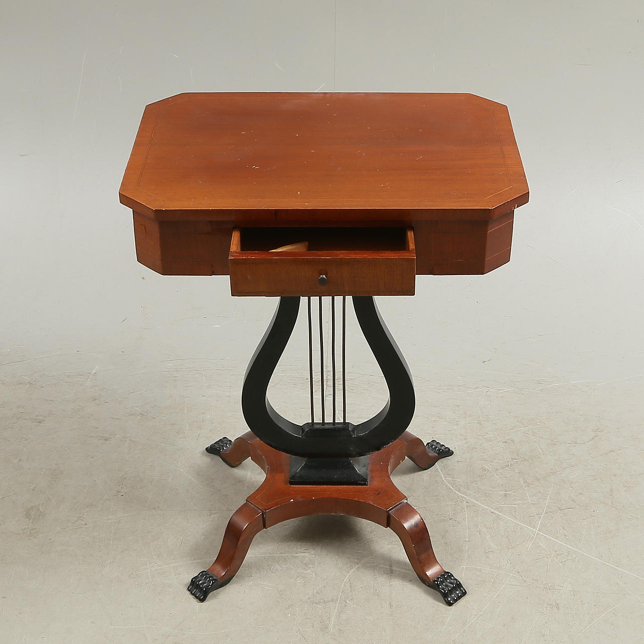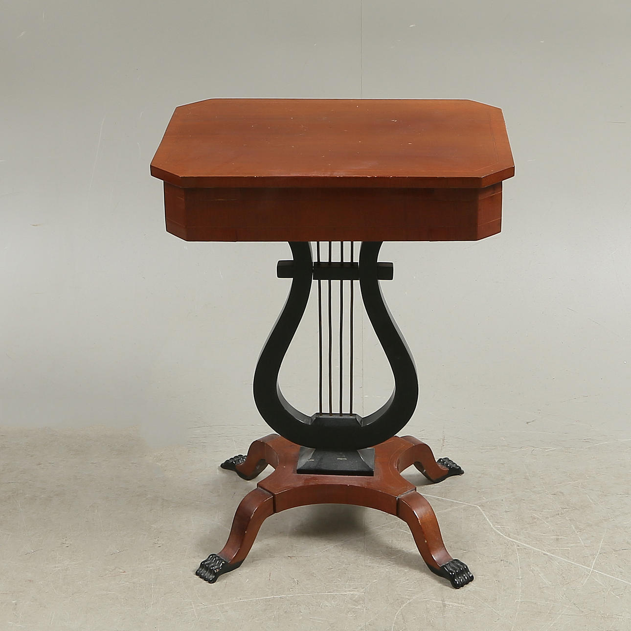 1590424. SEWING TABLE with lyre, wood, 20th century.