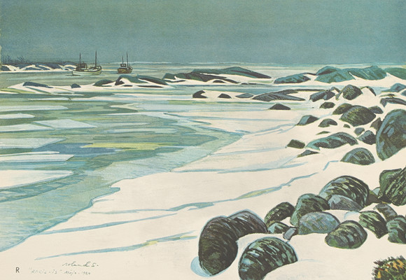 PAUL GAUGUIN. reproduction, 'Les meules jaunes'', offset print on canvas, Master art.