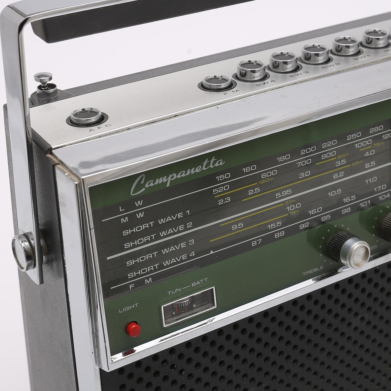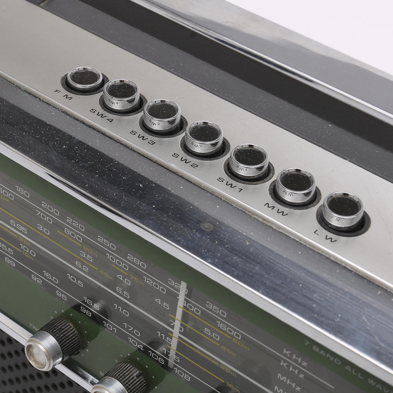 4 shortwave bands, FM, LW and MW. Size 33x22 cm.