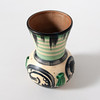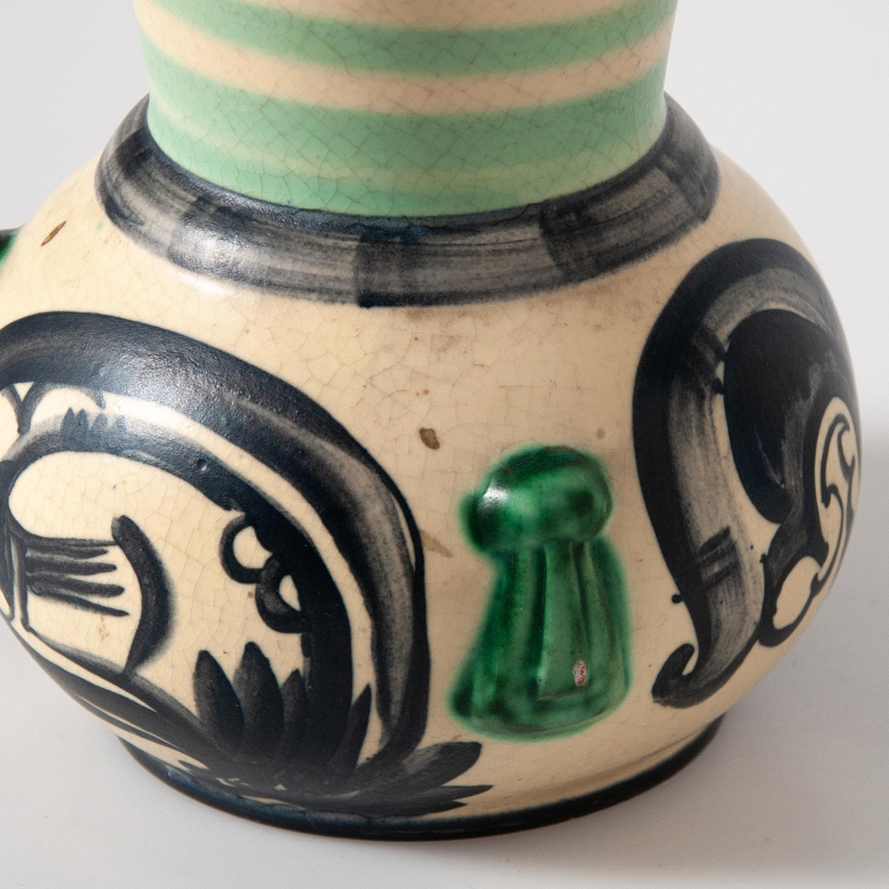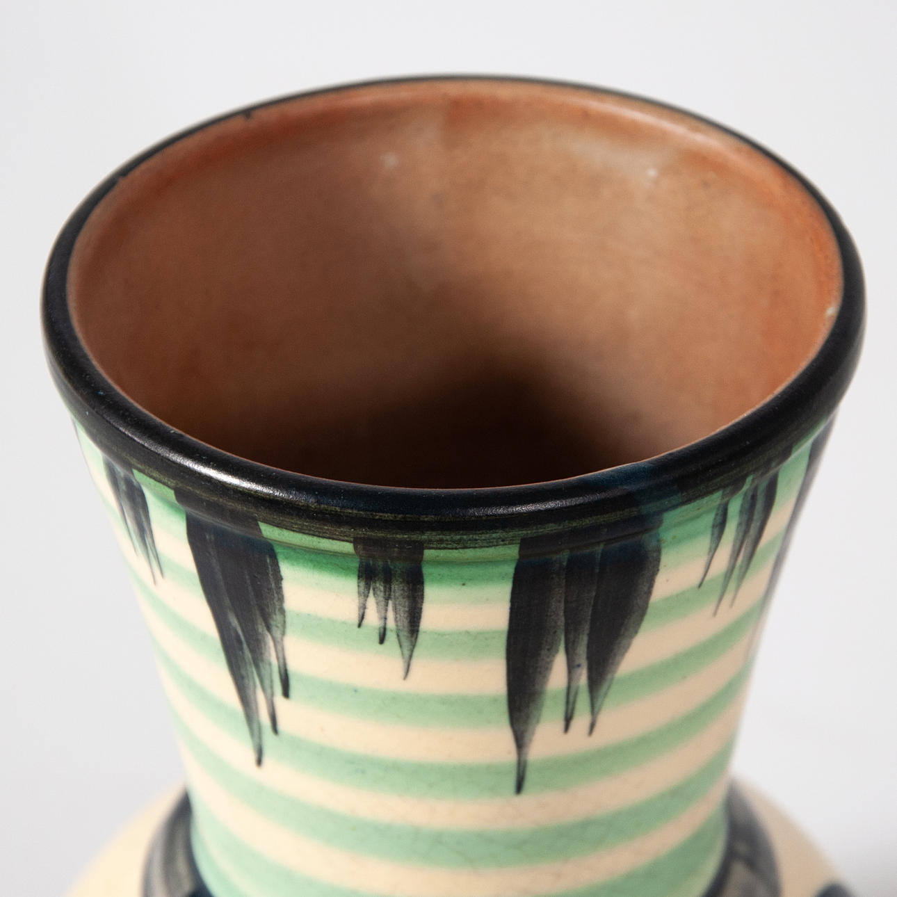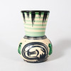 Stoneware, globular foot with conical mouth, decoration in green and black painter's signature HF, sales period 1939-44. Marked 112 Sweden.
