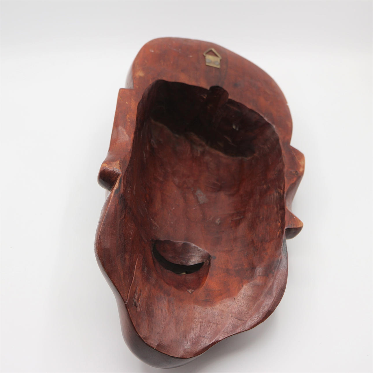 Wooden mask, with glass eyes, antique, bone teeth, Chinese, hand-carved, height: 29.5 cm.