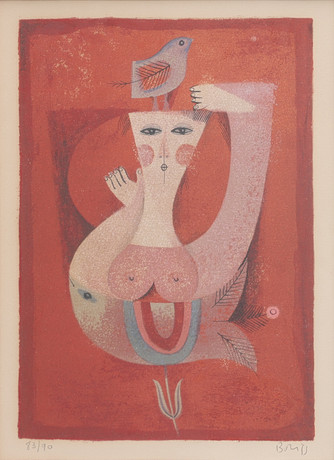 JOAN MIRÓ. After "Femme oiseau etoile", color lithograph, signed in the print.